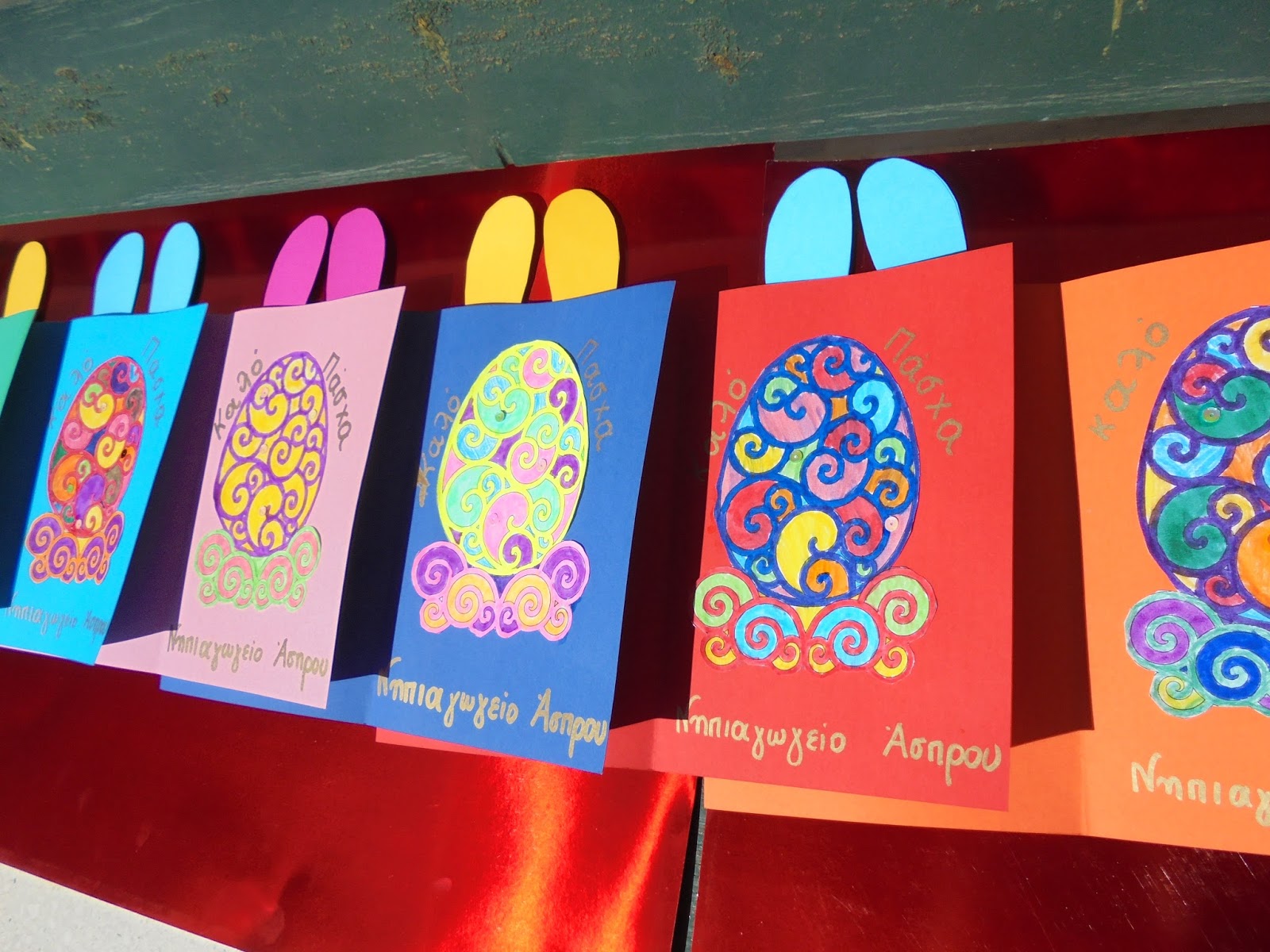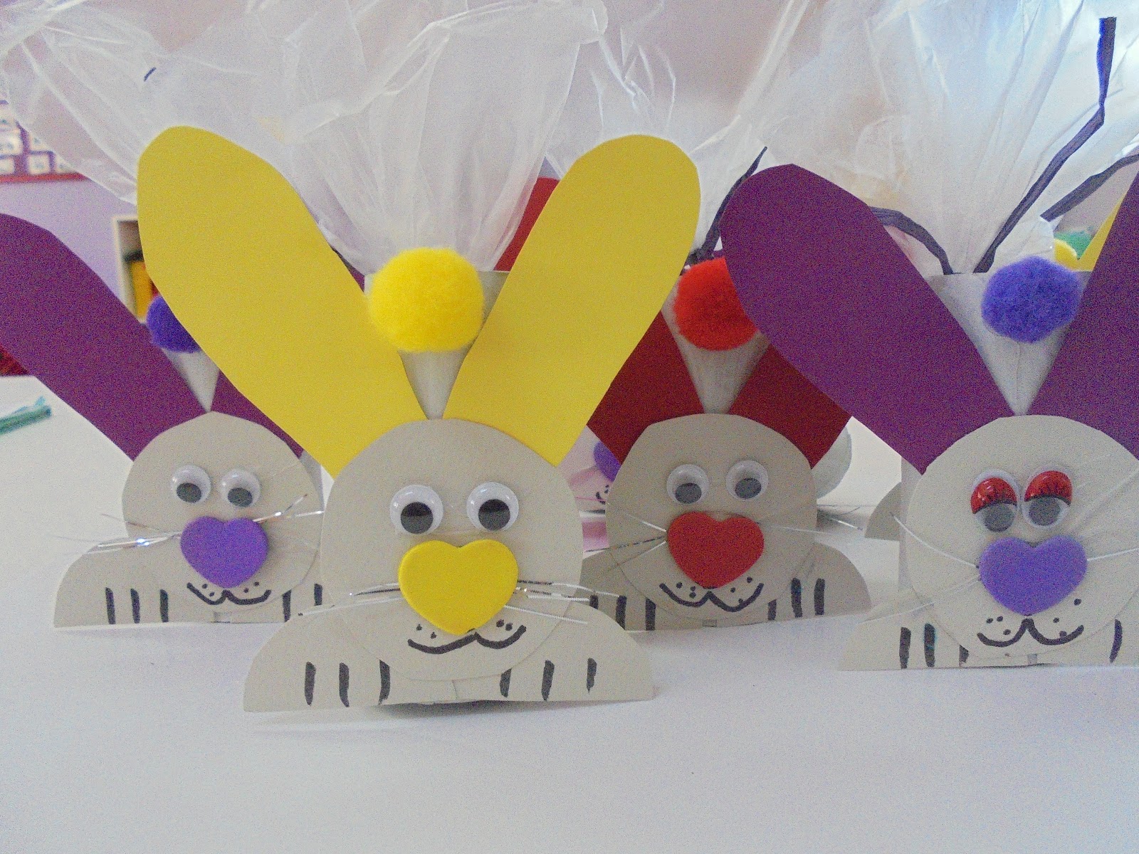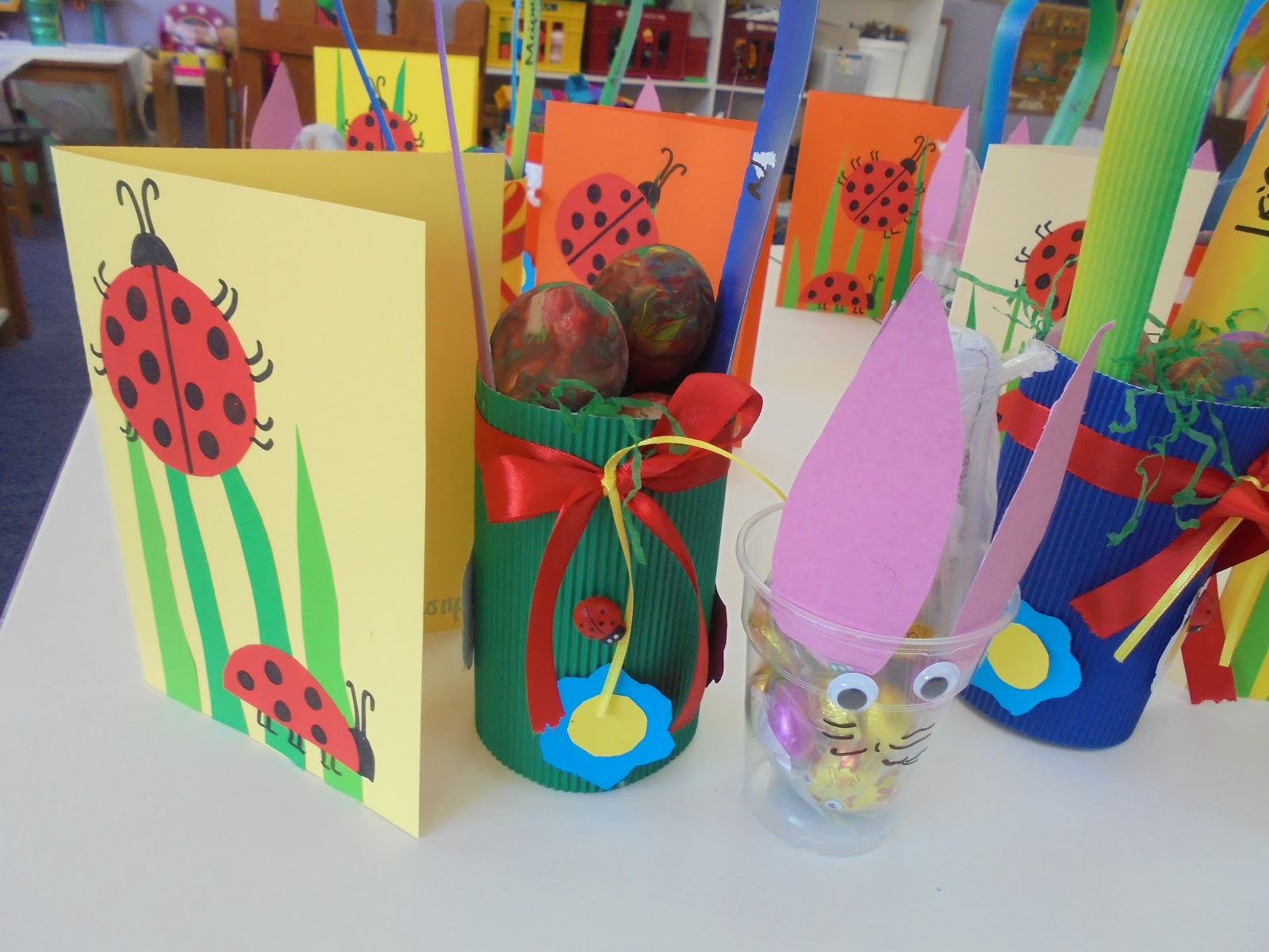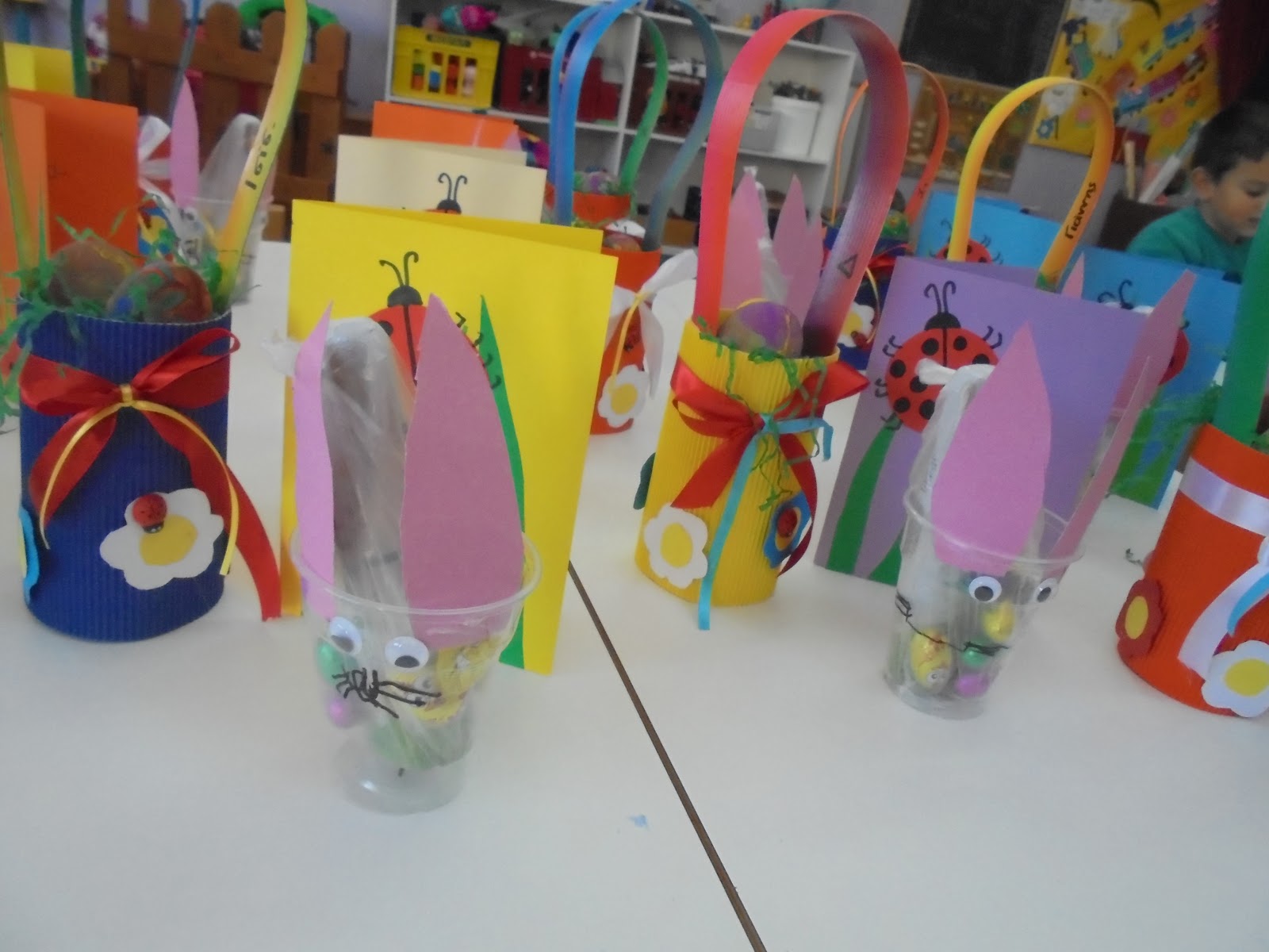 κάρτες πασχαλίτσες, λαγοί ποτήρια με λιχουδιές, καλαθάκια με αυγά