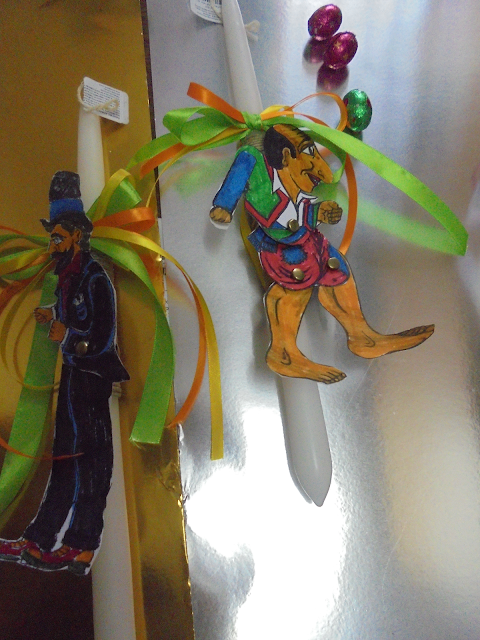 χειροποίητες λαμπάδες με φιγούρες καραγκιόζη