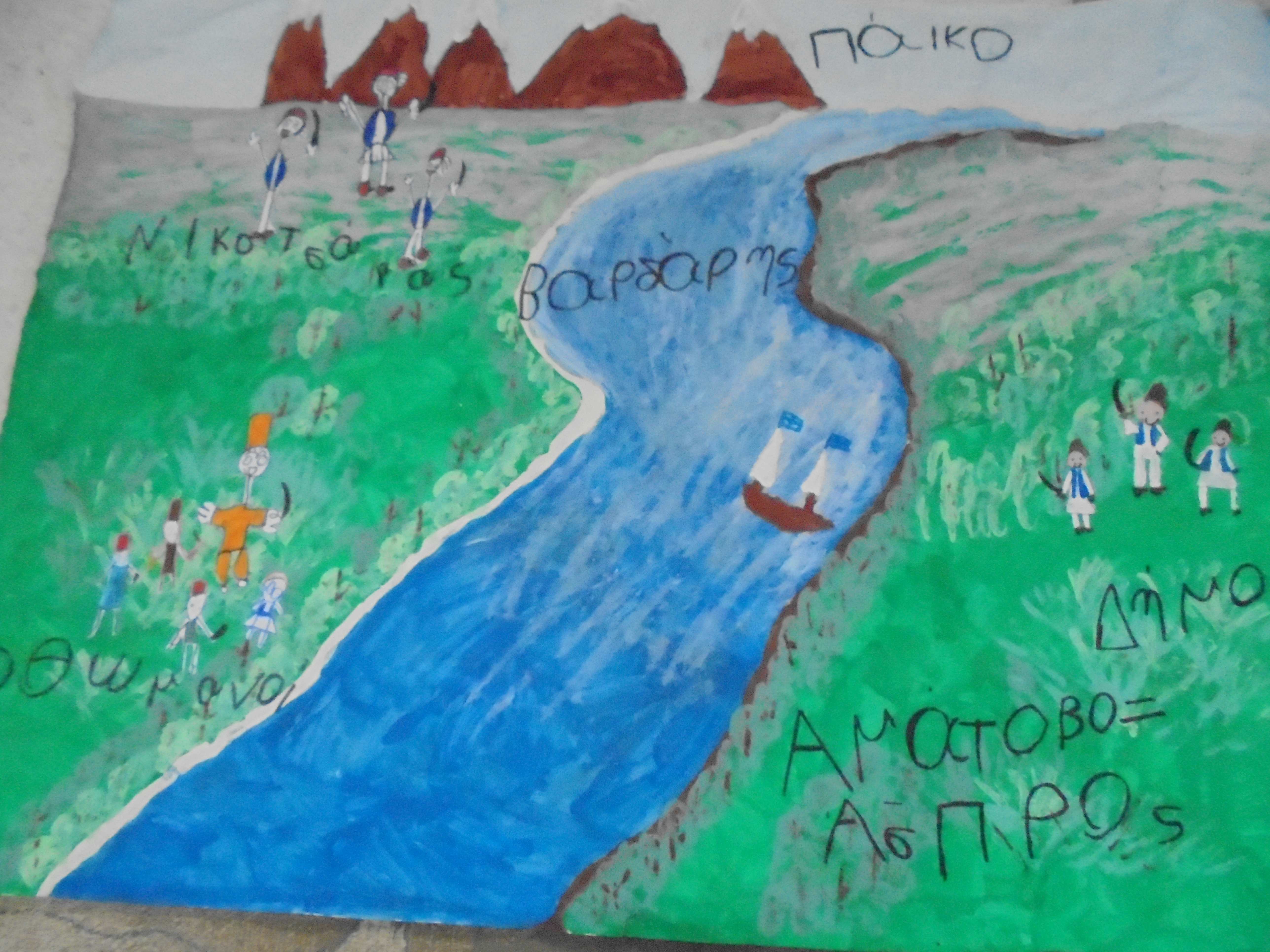 Ζωγραφίσαμε τον Αξιό, το Πάικο, τον κλέφτη Δήμο και Νικοτσάρα με τους άντρες τους. Τέλος τους Οθωμανούς
