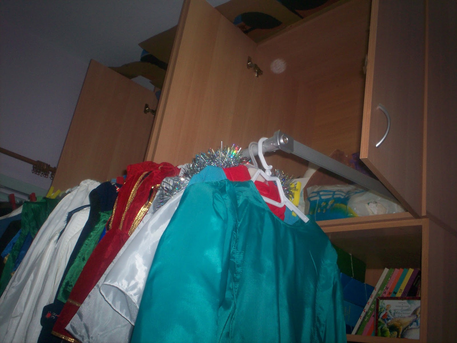 Ψάχνοντας στη ντουλάπα με τις στολές μας είπα να τη βγάλω μια φωτογραφία…είναι το βεστιάριό μας με διάφορες στολές χριστουγεννιάτικες, αποκριάτικες, για την 28η Οκτωβρίου, την 25η Μαρτίου, στολές παραδοσιακές και σύγχρονες που συγκεντρώσαμε όλα αυτά τα χρόνια και εξυπηρετούν τα παιδιά και τους γονείς σε διάφορες