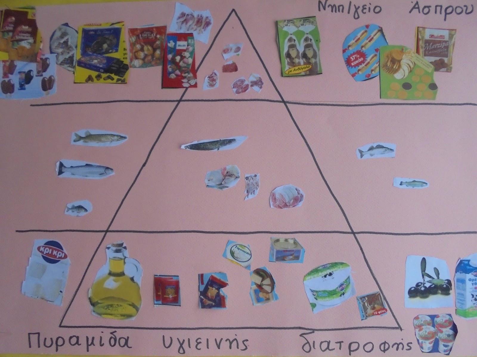Ομαδικό κολάζ με την πυραμίδα της μεσογ. διατροφής(2018-2019)