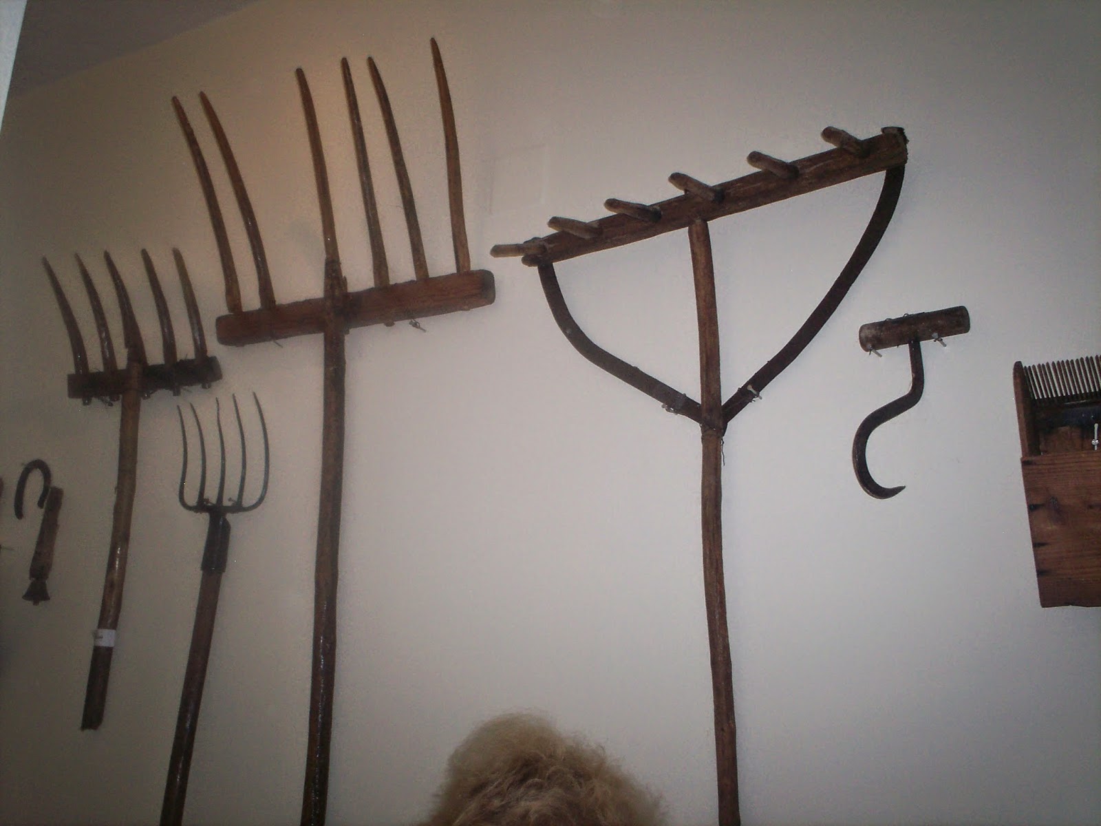 | λάμπα πετρελαίου-τσάπα-σκαλίδα-χειρόχτενα-μιτόχτενα -ρόκα και αδράκτι-τυλιγάδι-σαίτες-πανέρι- σκάφη-το δρεπάνι-καλάθι-τρύγος |