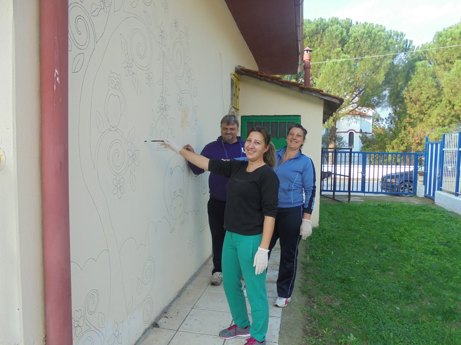 Θετική ήταν και η ανταπόκριση από τις υπηρεσίες του Δήμου Παιονίας. Το συνεργείο που μας έστειλαν έβαψε το μπροστινό μέρος του σχολείου μας και τη μεγαααάλη μας περίφραξη! Να το αποτέλεσμα!