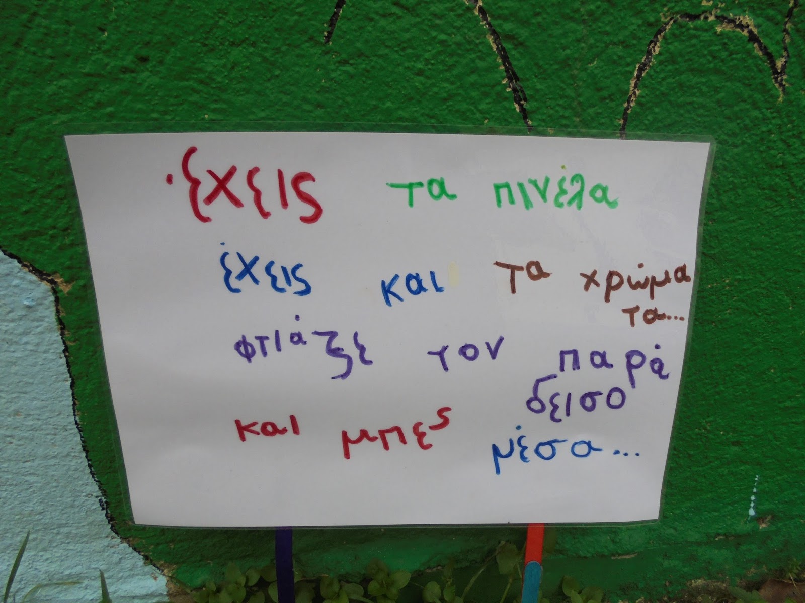 Και στα μαρουλάκια γράψαμε κάτι που μας άρεσε πολύ, να το βλέπουν και τα παιδιά του δημοτικού μιας και περνούν από εκεί!!