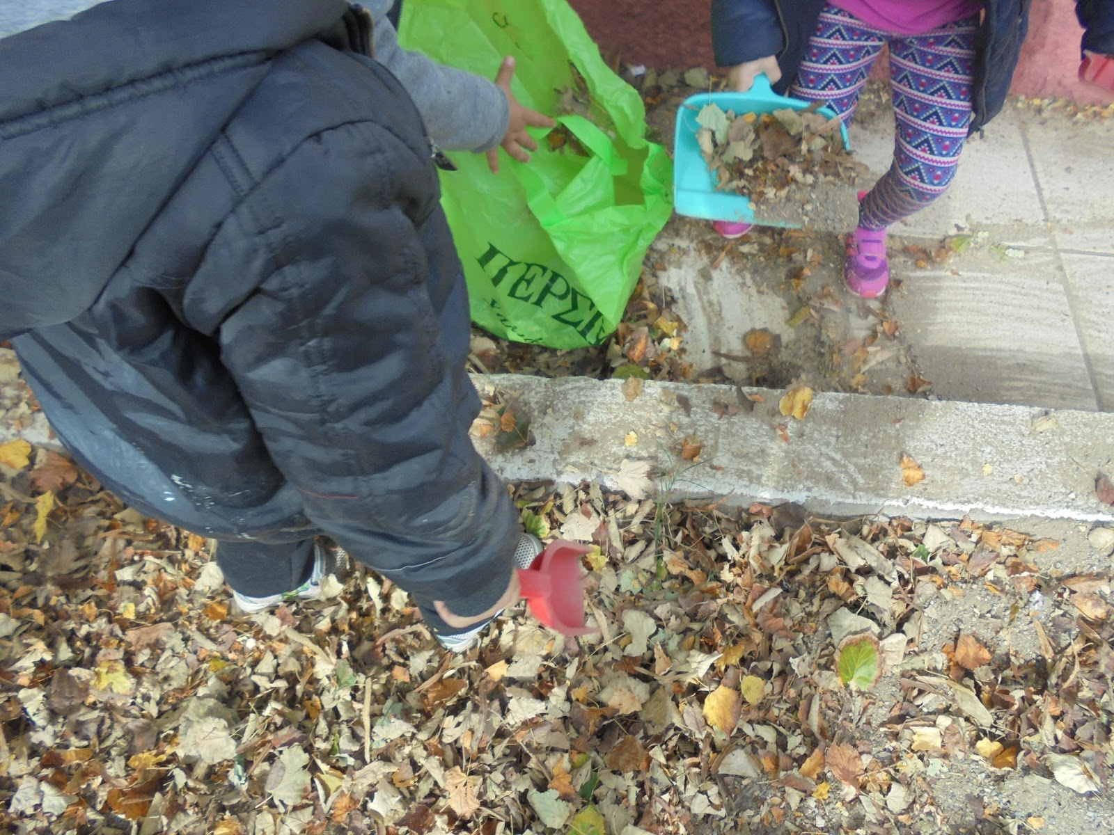 Μαζέψαμε τα φύλλα σε σακούλες και σκουπίσαμε