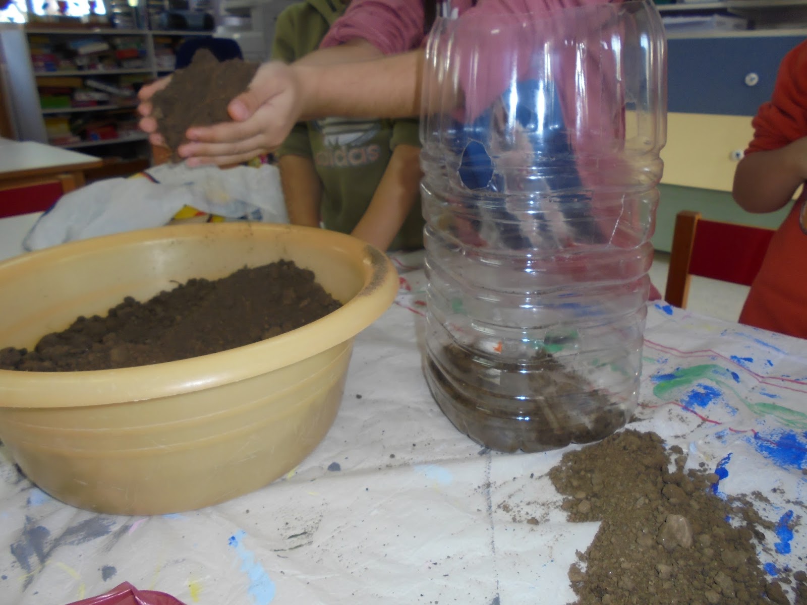Μα δεν μείναμε εκεί! μαζέψαμε στην τάξη πλαστικά μπουκάλια από νερό και λάδι και τα ανακυκλώσαμε κάνοντάς τα γλάστρες! Μαζέψαμε στην τάξη με τη βοήθεια των γονέων διάφορους σπόρους και φρέσκο χώμα από τους μπαξέδες μας.