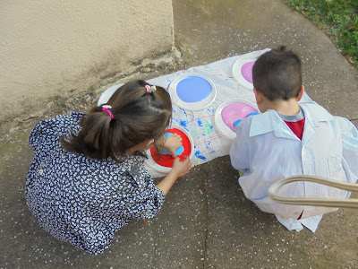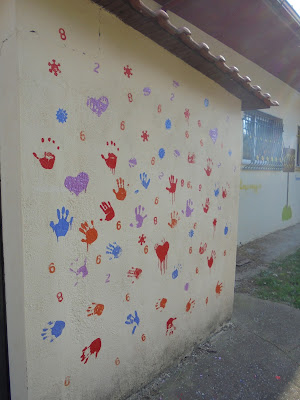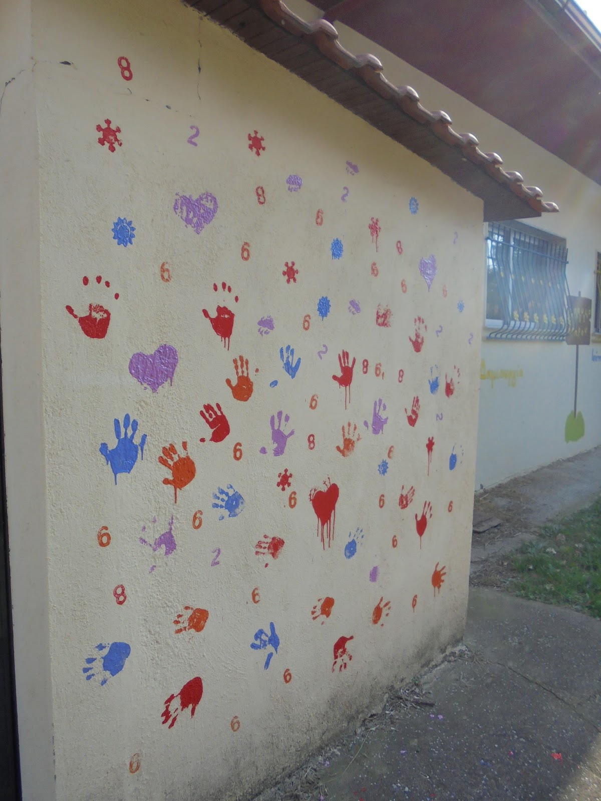 - ζωγραφική στον τοίχο από τα νήπια στα πλαίσια της αισθητικής αναβάθμισης της σχολικής αυλής