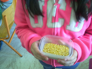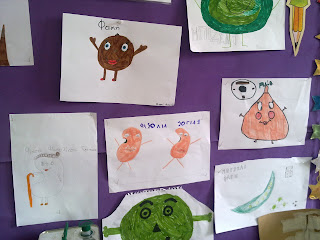 Τα παιδιά έφτιαξαν σήμερα φιγούρες οσπρίων για να χρησιμοποιηθούν ως ήρωες σε ένα κουκλοθέατρο.