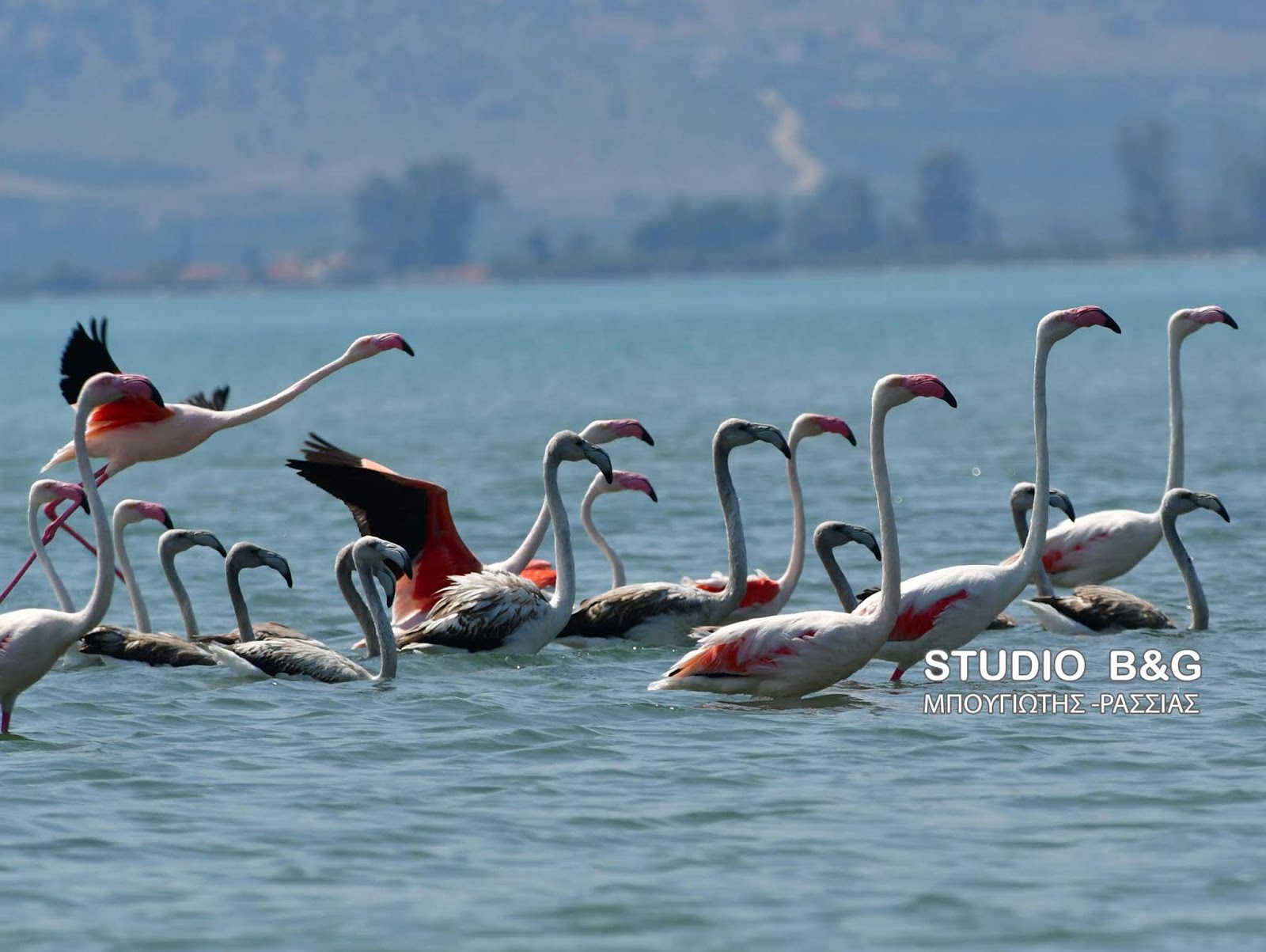 Τριάντα πανέμορφα φλαμίνγκο ξεκουράζονται στο Ναύπλιο