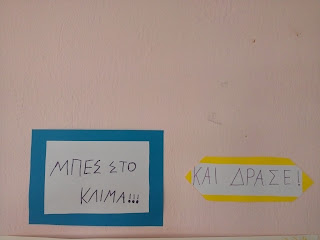 Φέτος, με τους μαθητές του Δ2, για να μην επαναλαμβανόμαστε, σταθήκαμε περισσότερο στην κλιματική αλλαγή, που οφείλεται τόσο σε ανθρώπινες δραστηριότητες όσο και και σε φυσικά αίτια. Αναφερθήκαμε στο σημαντικότερο φαινόμενο της κλιματικής αλλαγής, που είναι η αύξηση της θερμοκρασίας της Γης, η οποία δημιουργείται μέσω ενός μηχανισμού που ονομάζεται “φαινόμενο του θερμοκηπίου”. Ενημερωθήκαμε γι΄αυτή από πλούσιο εκπαιδευτικό υλικό στο διαδίκτυο, μάθαμε τις επιπτώσεις της στα καιρικά φαινόμενα, τη γεωργία, τα τρόφιμα, την υγεία και την υποβάθμιση και καταστροφή που μπορεί να επιφέρει στα οικοσυστήματα και τη βιοποικιλότητα.