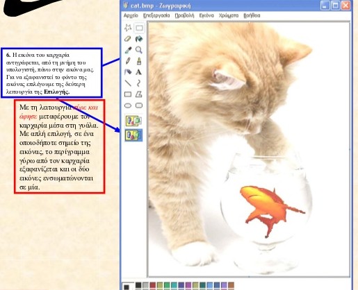 Κάντε κλικ εδώ και παρακολουθήστε τη διαδικασία δημιουργίας μιας εικόνας με ένωση δύο άλλων εικόνων, χρησιμοποιώντας το πρόγραμμα της ζωγραφικής.