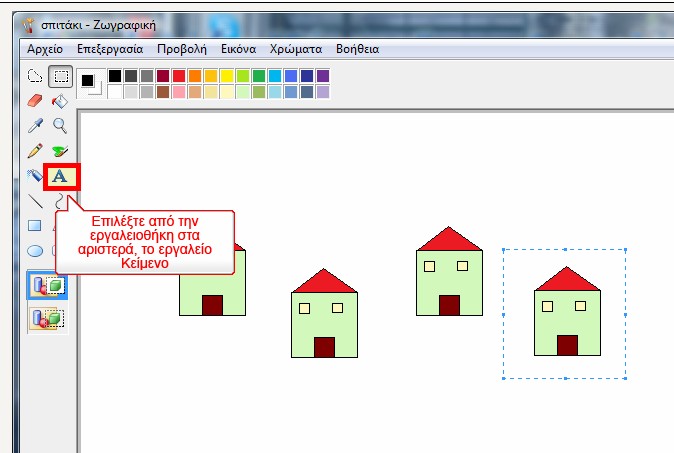 Κάντε κλικ εδώ και δείτε πως μπορούμε να φτιάξουμε μια καινούρια εικόνα (χωριό), χρησιμοποιώντας μια υπάρχουσα (σπιτάκι), μέσα από το πρόγραμμα της ζωγραφικής.