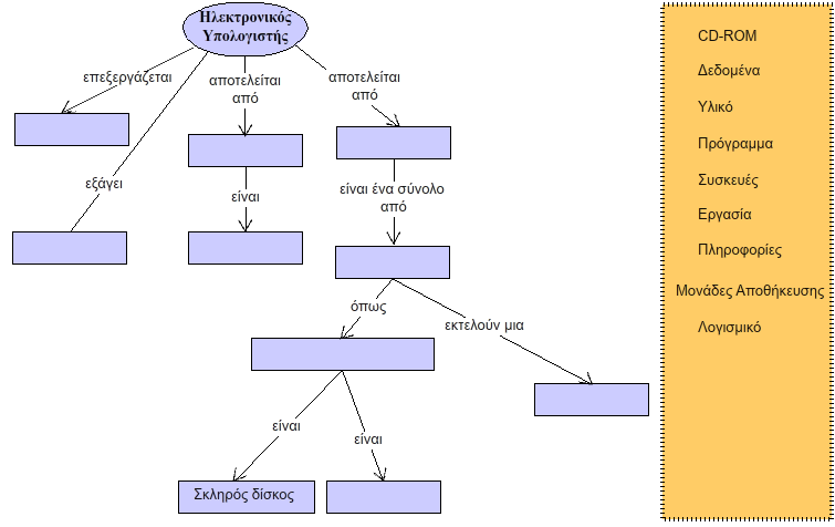 Κάντε κλικ εδώ και ολοκληρώστε τον εννοιολογικό χάρτη του υπολογιστή, συσχετίζοντας μεταξύ τους τις διάφορες έννοιες του χάρτη.