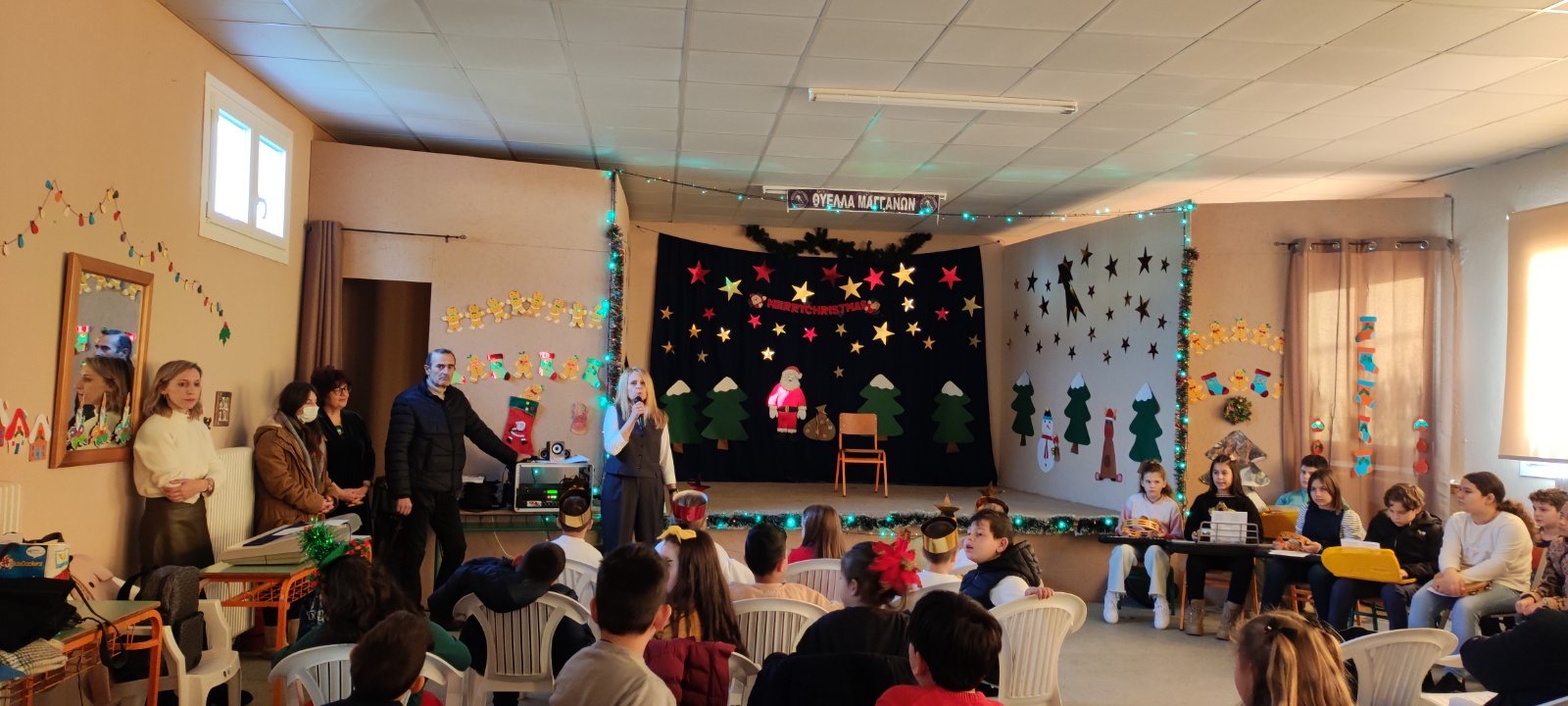Η γιορτή ξεκίνησε με ένα θερμό καλωσόρισμα από τη διευθύντρια του σχολείου, που μας έβαλε αμέσως στο πνεύμα των Χριστουγέννων.