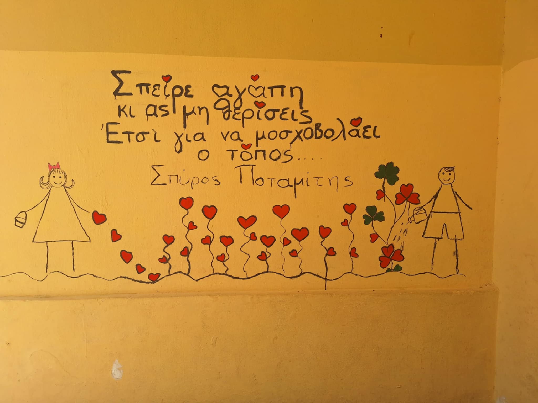 με την παρούσα επιστολή θα ήθελα να σας εκφράσω τις πιο θερμές μου ευχαριστίες για την τοιχογραφία που δημιουργήσατε στο γραφείο της Διευθύντριας του σχολείου μας. Το έργο σας δεν κοσμεί απλώς τον χώρο, αλλά του προσδίδει ζωντάνια, έμπνευση και αισθητική αρμονία, στοιχεία που αντανακλούν το πνεύμα της παιδείας και της δημιουργίας.