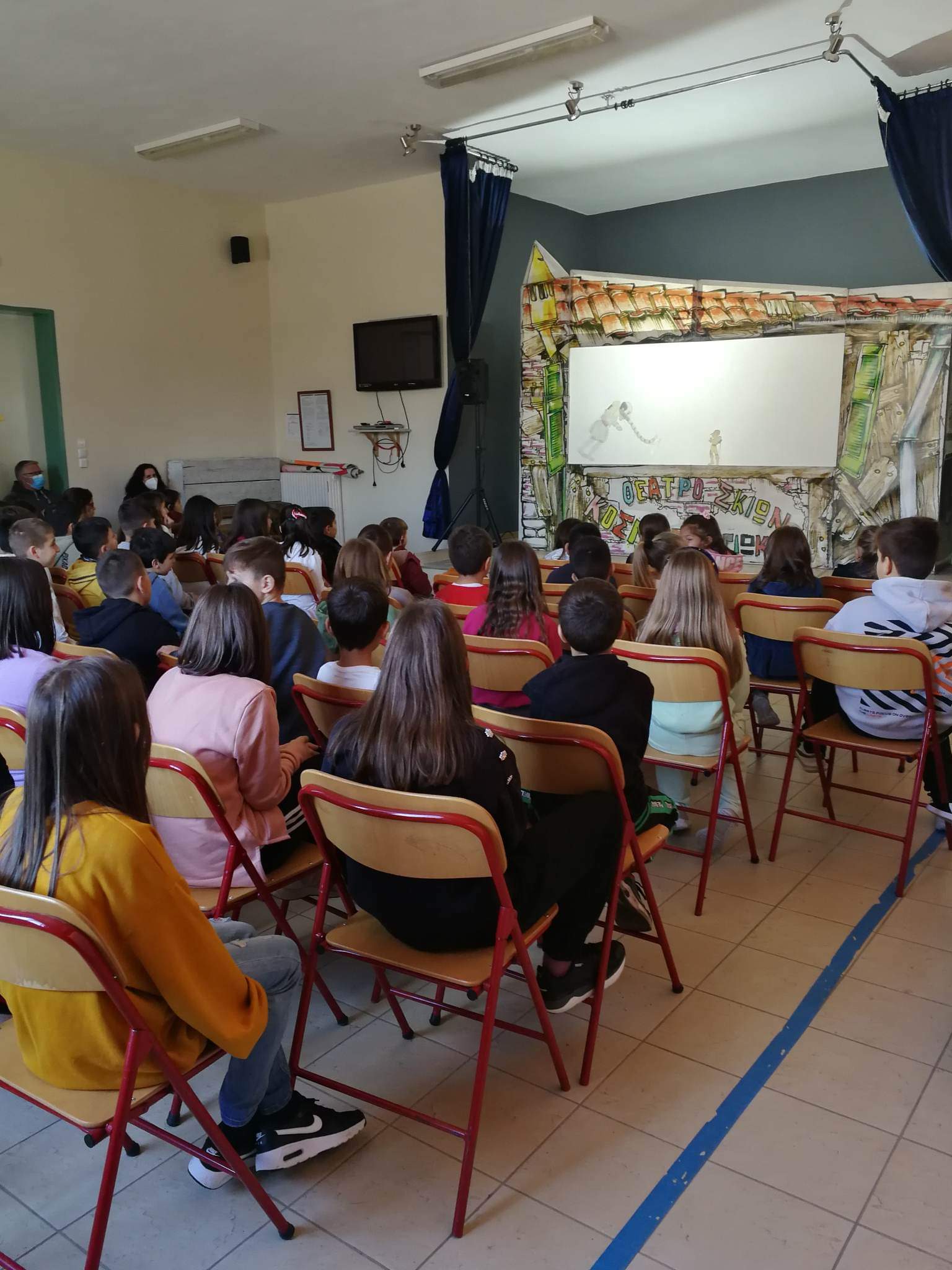 ‘’ Ημέρα Καραγκιόζη’’ η σημερινή με μία παράσταση που έφερε τους μαθητές και τις μαθήτριες του σχολείου σε επαφή με τις φιγούρες του Θεάτρου Σκιών. Ο Καραγκιόζης και οι υπόλοιποι ήρωες παρέλασαν μπροστά στα μάτια των μαθητών/τριών του σχολείου σε μια παράσταση που με τη θεματική και το διαδραστικό τρόπο προσέγγισης διασκέδασε , προβλημάτισε, αλλά και προσέφερε σημαντικά παιδαγωγικά αποτελέσματα.