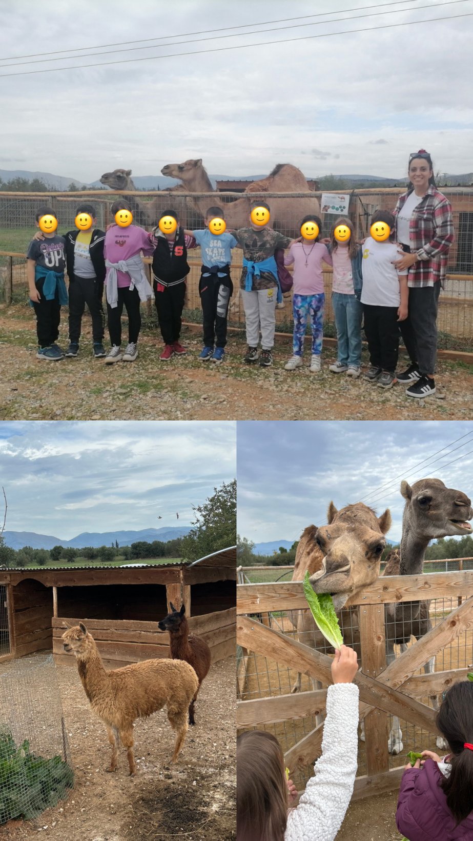 Η σχολική μας εκδρομή στο Κτήμα Κουρμπέλη στη Ν. Τύρινθα Ναυπλίου ήταν μια μοναδική εμπειρία γεμάτη ενθουσιασμό και ανακαλύψεις! Εκεί είχαμε την ευκαιρία να δούμε από κοντά ζώα που πολλοί από εμάς δεν είχαμε ξανά δει, όπως καμήλες, λάμα, αλπάκα, σουρικάτες, πυγμαία κατσικάκια, γουάλαμπι, γουρουνάκια, άλογα, ελαφάκια, παγώνια και πολλά ακόμα. Οι μαθητές είχαν την ευκαιρία να περιηγηθούν στους χώρους του κτήματος, να μάθουν ενδιαφέροντα πράγματα για τα ζώα και… να ταΐσουν δύο γλυκύτατες καμήλες. Όλοι διασκέδασαν, συνεργάστηκαν και απόλαυσαν μια μέρα μακριά από τις αίθουσες.