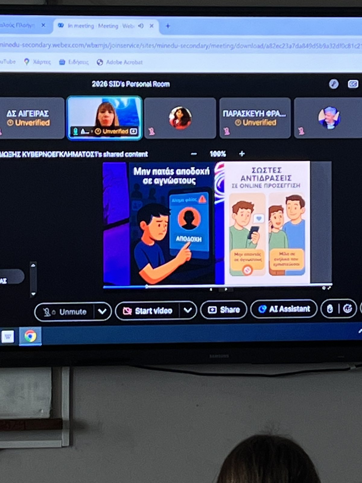 Στο πλαίσιο εορτασμού της Ημέρας Ασφαλούς Πλοήγησης στο Διαδίκτυο (2026), η Διεύθυνση Δίωξης Κυβερνοεγκλήματος της Ελληνικής Αστυνομίας και το Πανελλήνιο Σχολικό Δίκτυο (ΠΣΔ) του Υπουργείου Παιδείας, Θρησκευμάτων και Αθλητισμού συνδιοργανώνουν διαδικτυακή ημερίδα για την ασφαλή πλοήγηση στο διαδίκτυο. Οι μαθητές της Ε’ και Στ’ τάξης του Δημοτικού Σχολείου Αιγείρας παρακολούθησαν την εκδήλωση με πρωτοβουλία της κυρίας Μουστάκα Σοφίας, σχολικής ψυχολόγου.