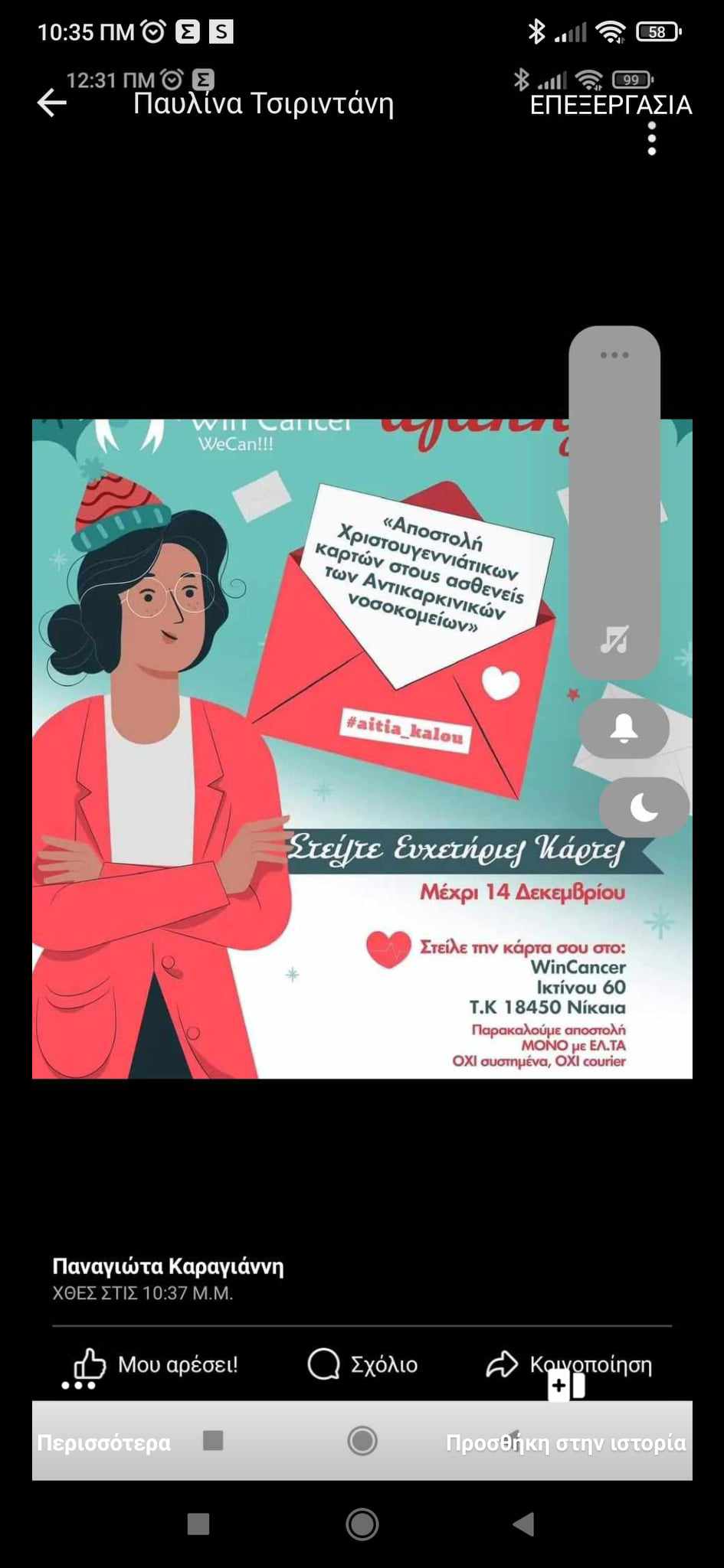 Αποστολή Χριστουγεννιάτικων καρτών στους ασθενείς των Αντικαρκινικών νοσοκομείων από τους μαθητές της Δ΄