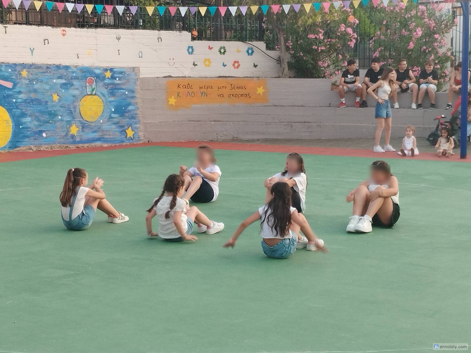 Στη συνέχεια, τη σκυτάλη πήραν όλες οι τάξεις, παρουσιάζοντας χορούς και μουσικά δρώμενα που είχαν ετοιμάσει με τους δασκάλους τους. Η αυλή του σχολείου γέμισε χαμόγελα, μουσική και χειροκροτήματα.