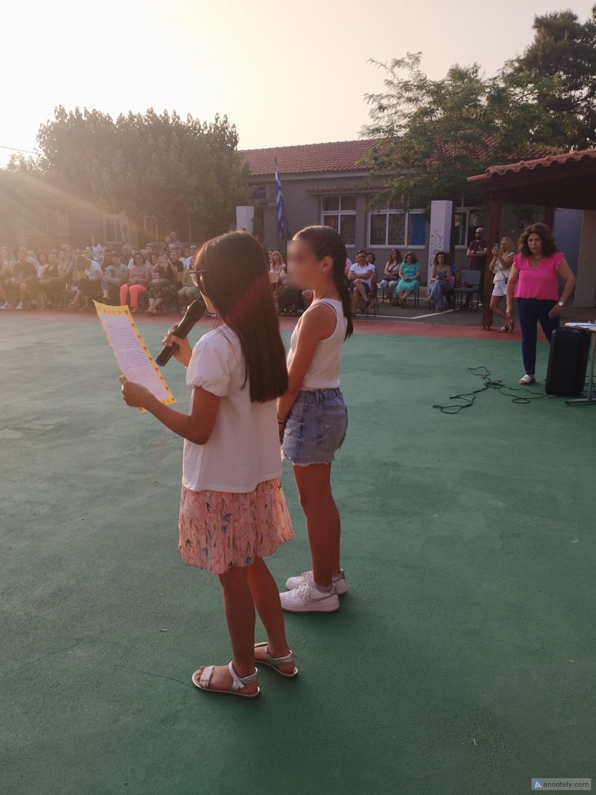 Η αυλαία της φετινής σχολικής χρονιάς έκλεισε με μια συγκινητική και γιορτινή εκδήλωση στο Δημοτικό Σχολείο Ανθηδόνας. Η τελική σχολική γιορτή ξεκίνησε με τον χαιρετισμό του διευθυντή, ο οποίος ευχαρίστησε μαθητές, εκπαιδευτικούς και γονείς για τη συνεργασία και τις όμορφες στιγμές της χρονιάς, ενώ τόνισε τη σημασία της παιδείας και της κοινότητας.
