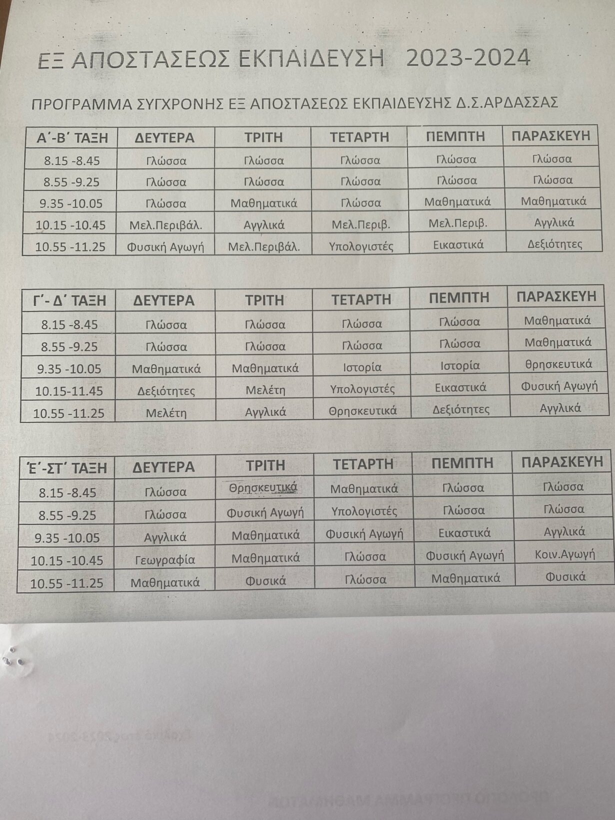 ΠΡΟΓΡΑΜΜΑ ΕΞ ΑΠΟΣΤΑΣΕΩΣ 2023-24