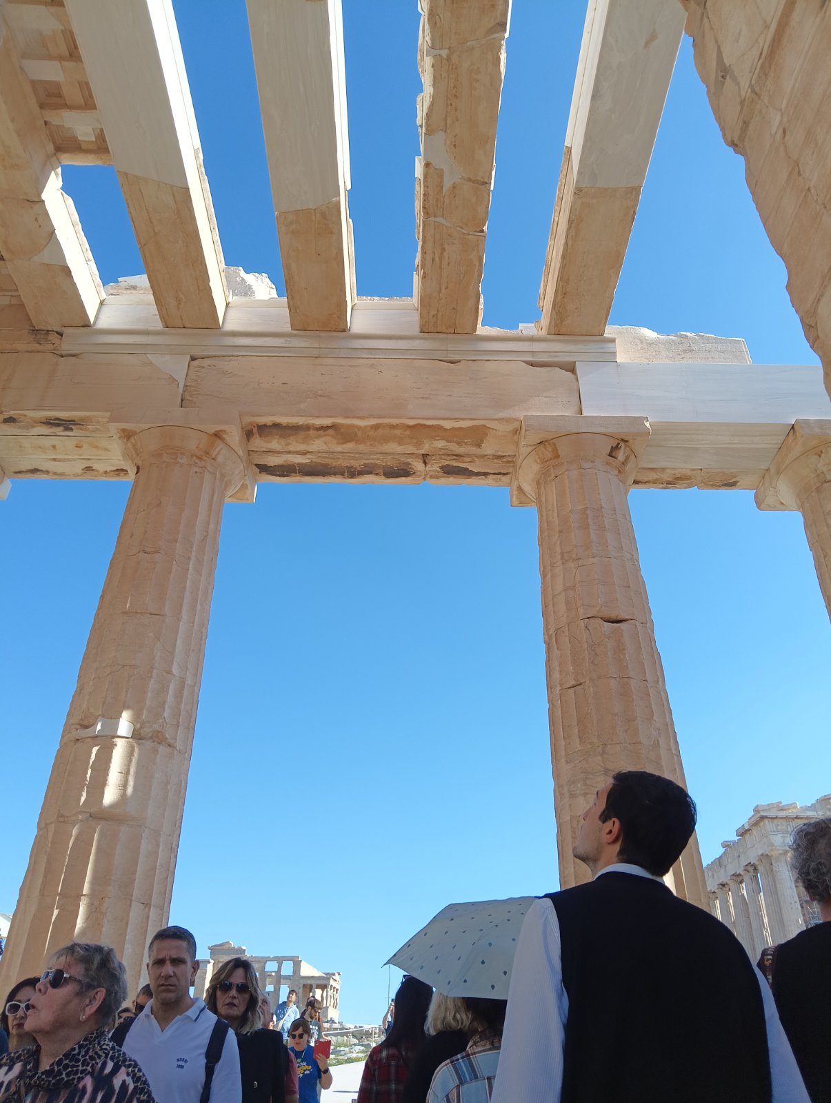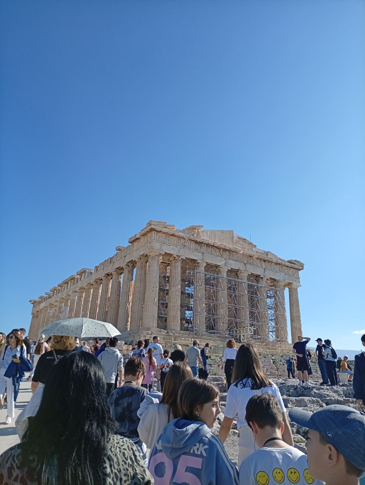 Το Σάββατο 15 Νοεμβρίου επισκεφθήκαμε το Μουσείο της Ακρόπολης και στη συνέχεια τον βράχο της Ακρόπολης, όπου οι μαθητές γνώρισαν από κοντά ένα από τα σπουδαιότερα μνημεία του παγκόσμιου πολιτισμού. Το απόγευμα παρακολουθήσαμε τη θεατρική παράσταση «Οι Θεοί του Ολύμπου και η Δημιουργία του Κόσμου» της Κάρμεν Ρουγγέρη στο Christmas Theater. Τα παιδιά παρακολούθησαν με απόλυτη προσοχή για δύο ολόκληρες ώρες – με ένα μικρό διάλειμμα – και ενθουσιάστηκαν με τη μουσική, τα κοστούμια και την πλοκή της παράστασης. Το βράδυ κλείσαμε τη μέρα μας με μια πολύ όμορφη μουσική βραδιά στο φιλόξενο ταβερνάκι «Πάμε Ψυρρή», όπου μαθητές και συνοδοί μοιραστήκαμε στιγμές χαλάρωσης και παρέας.
