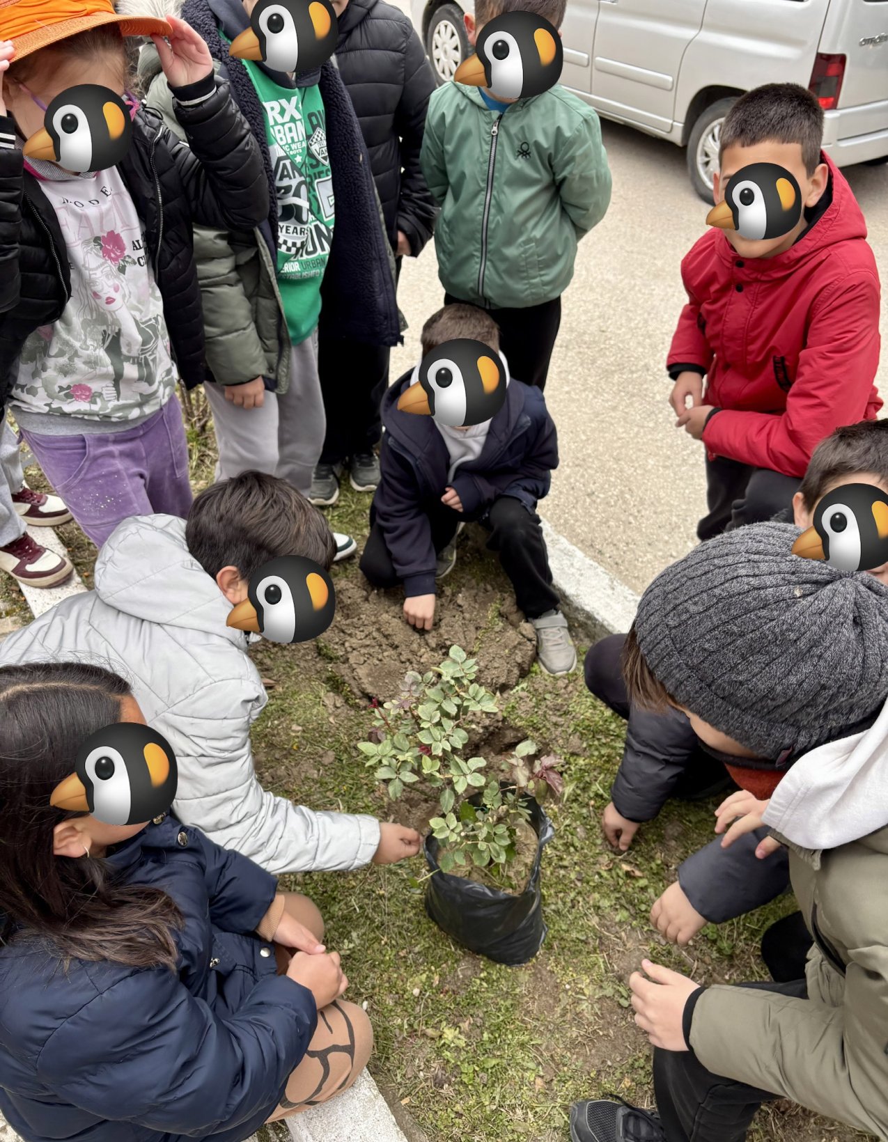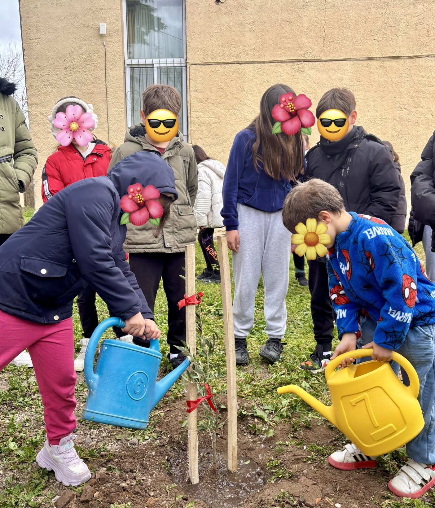 Από το πρωί το σχολείο μας γέμισε χαμόγελα, μουσικές και χρώματα. Οι μαθητές μας φύτεψαν βολβούς λουλουδιών στα παρτέρια, ενώ στολίσαμε την αυλή μας με ένα μικρό δεντράκι ελιάς – δώρο του αγαπημένου μας πρώην διευθυντή, κ. Δημήτρη, που μας το πρόσφερε με πολλή αγάπη. Οι μεγαλύτεροι μαθητές το φύτεψαν και το στήριξαν, ενώ οι μικρότεροι το πότισαν και υποσχέθηκαν να το φροντίζουν με συνέπεια.