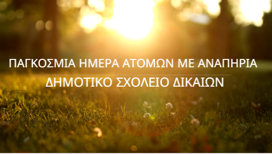 Την Παρασκευή 1 Δεκεμβρίου οι μαθητές και μαθήτριες του Δημοτικού Σχολείου Δικαίων συγκεντρώθηκαν στην αίθουσα της Δ΄ τάξης . Το Θέμα της ημέρας : Τα άτομα με αναπηρία.