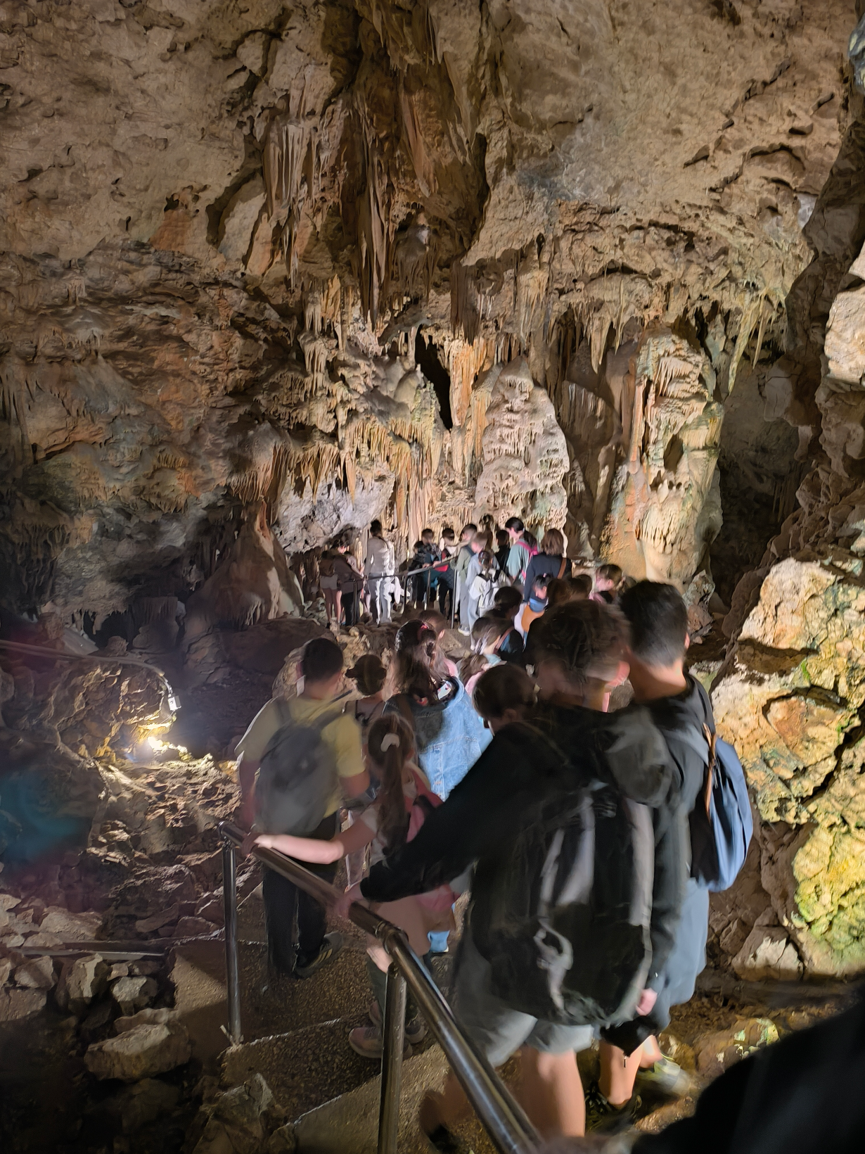 Εκπαιδευτική επίσκεψη πραγματοποίησαν οι μαθητές-τριες και οι εκπαιδευτικοί του Δημοτικού Σχολείου Δροσοχωρίου την Τρίτη 13-5-2025 στο Σπήλαιο του Περάματος. Οι μαθητές-τριες ξεναγήθηκαν στο χώρο του σπηλαίου που απαριθμεί 19 είδη σταλακτιτών και σταλαγμιτών, ενημερώθηκαν για τον γεωλόγο-σπηλαιολόγο, Ιωάννη Πετρόχειλο που ανακάλυψε το σπήλαιο το 1951, για τη θερμοκρασία του αέρα (180 Κελσίου) και για τη θερμοκρασία των υδάτων των μικρών λιμνών που σχηματίζονται εντός του Σπηλαίου (140    Κελσίου), αποκομίζοντας όμορφες μοναδικές εμπειρίες.