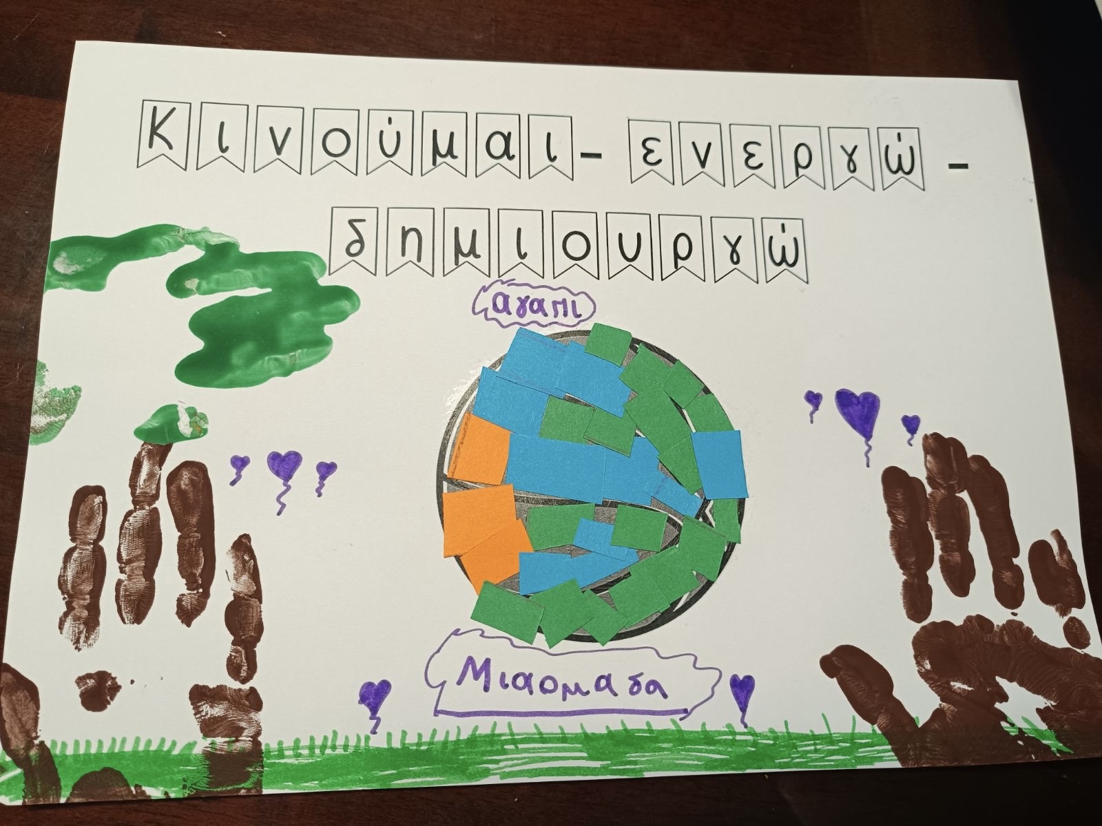 Σε χώρους του Σχολείου πραγματοποιήθηκαν δύο δράσεις. Η πρώτη αφορούσε αθλητικές δραστηριότητες υπό την εποπτεία του κ. Σταυριανού (εκπαιδευτικός Φυσικής Αγωγής). Η δεύτερη, αφορούσε χειροτεχνίες με κολάζ υπό την εποπτεία της κας Ραλλη και της κας Σφυράκη. Συμμετείχαν όλοι οι μαθητές.