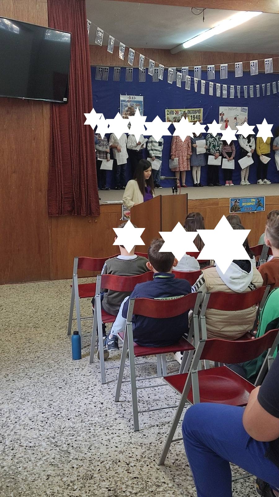 Την Παρασκευή 27 Οκτωβρίου, τελέστηκε με επιτυχία η γιορτή της Επετείου του Όχι στην αίθουσα εκδηλώσεων του δημοτικού μας σχολείου. Οι μαθητές της Γ’ και της Δ’ τάξης με υπεύθυνες τις δασκάλες τους κ. Κωνσταντίνα Καραγεώργου και κ. Χριστίνα Διαμαντοπούλου, απήγγειλαν σε μαθητές, γονείς και εκπαιδευτικούς ποιήματα και χρονικά όπως και επετειακά τραγούδια.