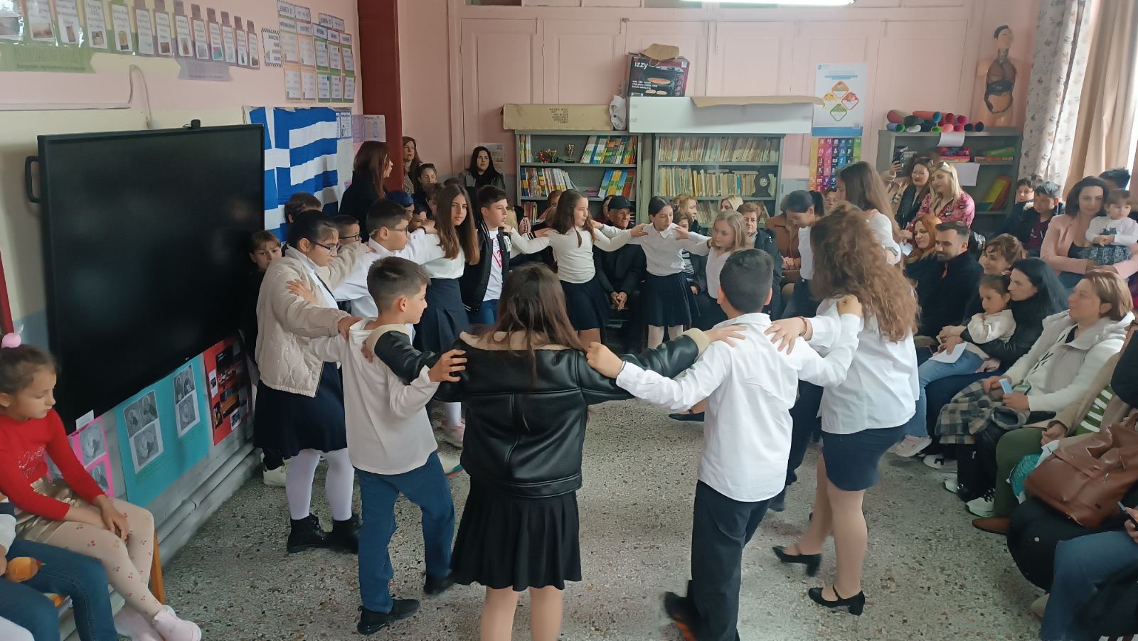 Την Τρίτη 24.03.2026 γιορτάσαμε στο σχολείο μας την επέτειο της 25ης Μαρτίου. Η Γ’ τάξη, υπό την καθοδήγηση της κ. Κικής Δοξιάδου, είχε την κύρια ευθύνη των εκδηλώσεων, παρουσιάζοντας με επιτυχία το θεατρικό έργο «Κρυφό Σχολειό». Η προσπάθειά τους πλαισιώθηκε με ένα τραγούδι της Α’ τάξης, τα ποιήματα της Β’ τάξης και τους παραδοσιακούς χορούς των μεγάλων μας τάξεων (Δ’, Ε’, ΣΤ’).
