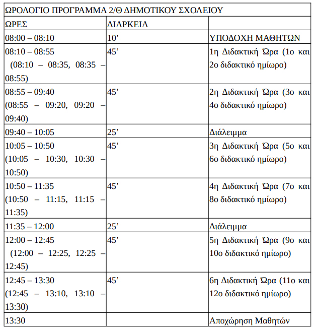 μπορεί να δοθεί, ύστερα από συνεννόηση με τον εκπαιδευτικό, στο τέλος του ημερησίου