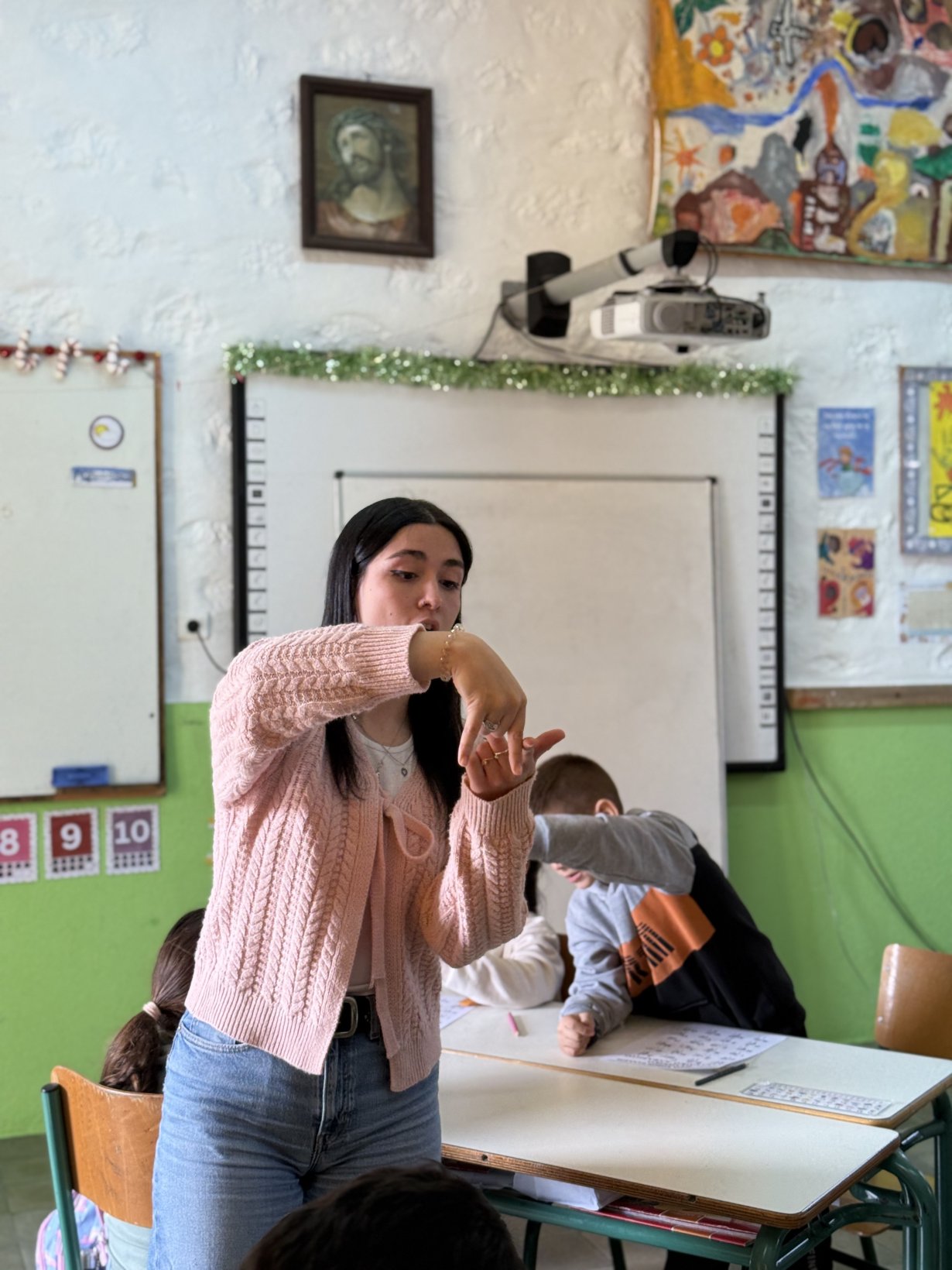 Ξεχωριστή στιγμή της ημέρας αποτέλεσε η παρουσία της κυρίας Σταυρούλας, η οποία μας εισήγαγε στη νοηματική γλώσσα. Οι μαθητές γνώρισαν έναν διαφορετικό τρόπο επικοινωνίας, έμαθαν βασικές λέξεις και συνειδητοποίησαν ότι η επικοινωνία μπορεί να έχει πολλές μορφές, όλες εξίσου σημαντικές.