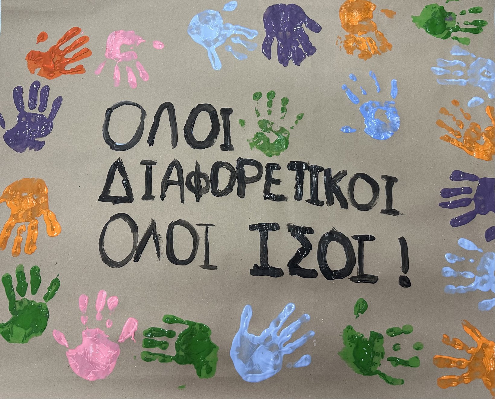 Οι μεγαλύτερες τάξεις παρακολούθησαν σχετικό βίντεο και δημιούργησαν αφίσες με τέμπερες, στις οποίες έγραψαν δυνατά μηνύματα για τη σπουδαιότητα της ημέρας. Μηνύματα που μιλούσαν για σεβασμό, ισότητα, αποδοχή, συνεργασία και αγάπη.
