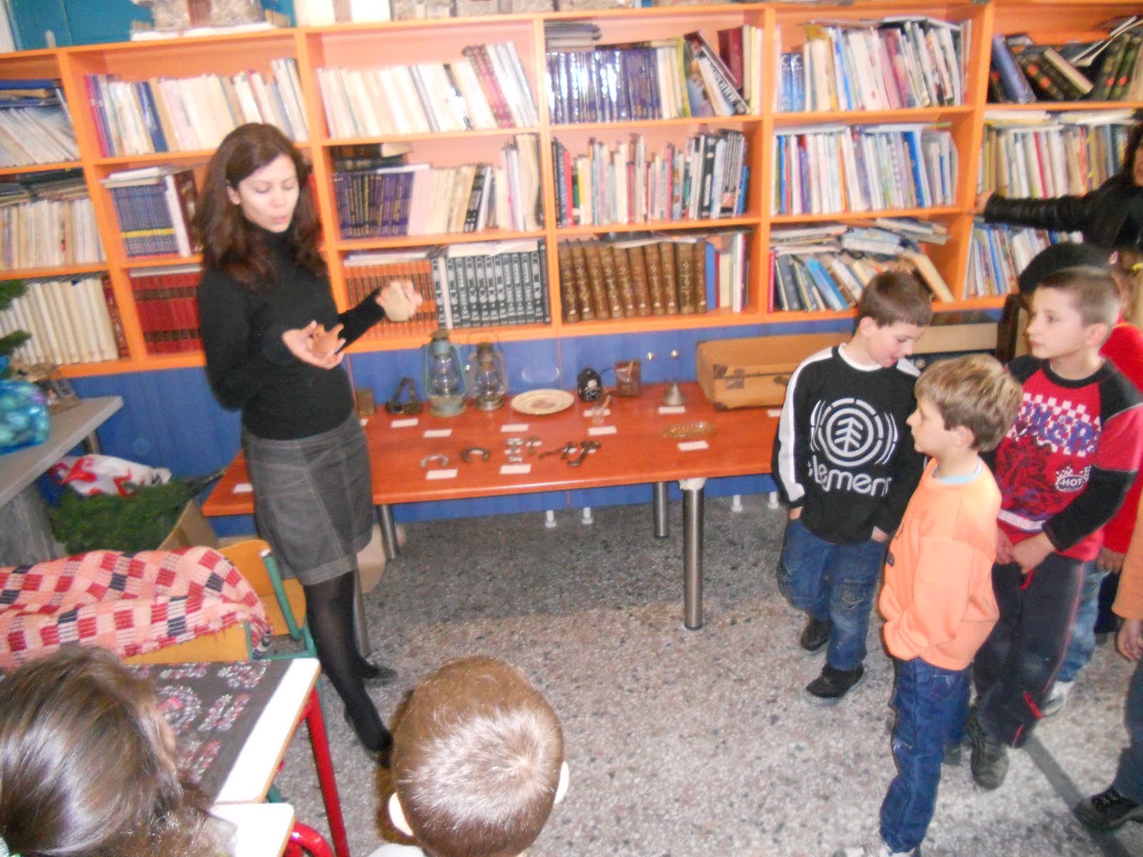 Την προηγούμενη εβδομάδα η Β΄τάξη του σχολείου μας με συμμετοχή και των μαθητών των υπολοίπων τάξεων οργάνωσε μια έκθεση με παλιά αντικείμενα, εξ’αφορμής μιας διδακτικής ενότητας της γλώσσας “Μές στο μουσείο”. Την έκθεση επισκέφθηκαν όλοι οι μαθητές μας όπου η υπεύθυνη δασκάλα της τάξης κ. Βασιλοπούλου Σταυρούλα, ξένάγησε και ενημέρωσε τα παιδιά για την χρήση των αντικειμένων που συνελέχθησαν.