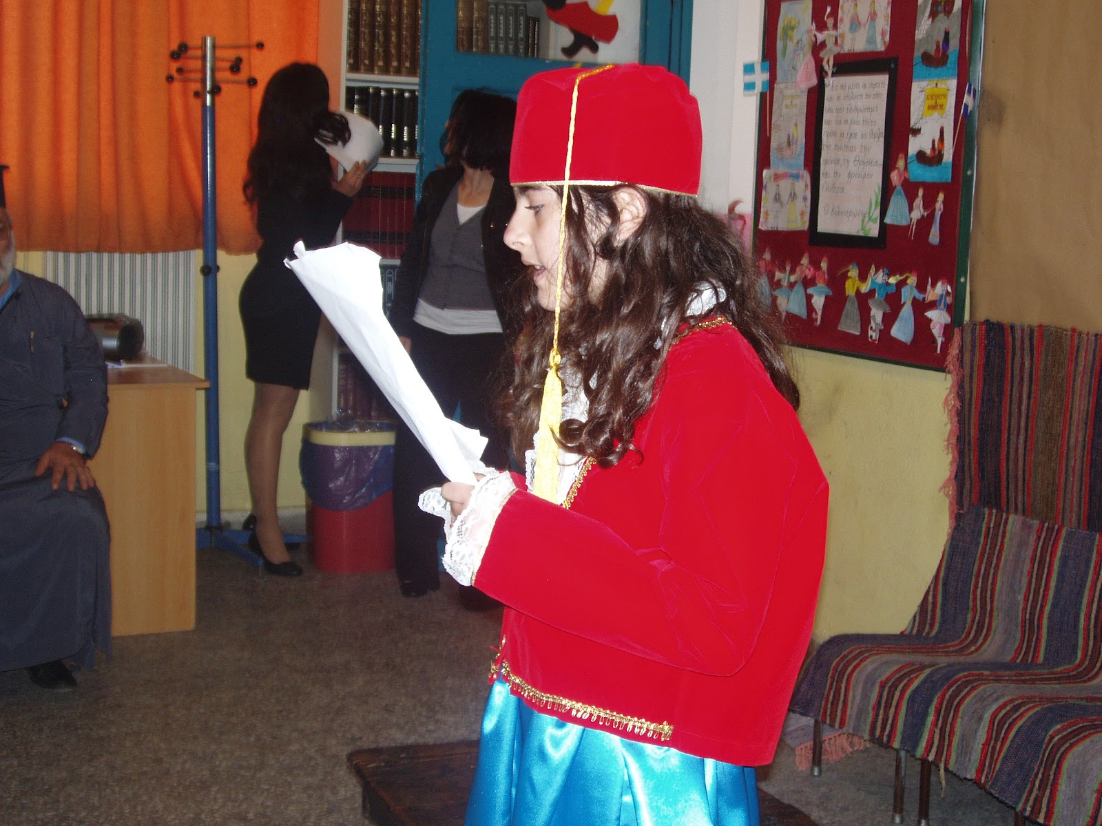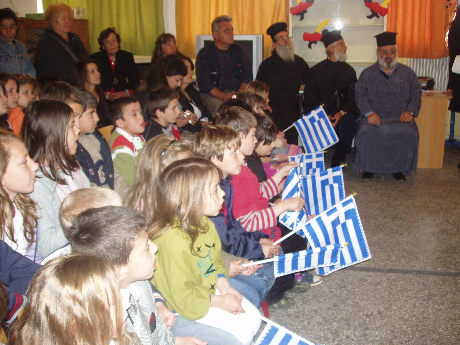 Στις 23 Μαρτίου γιορτάσαμε στο σχολείο μας τη διπλή γιορτή της 25ης  Μαρτίου. Οι μαθητές των Γ΄ και Δ΄ τάξεων παρουσίασαν θεατρικά σκετς και  τραγούδια. Υπεύθυνες της γιορτής ήταν η Βίκυ Ασημακοπούλου και η Γεωργία  Καμαρινού.