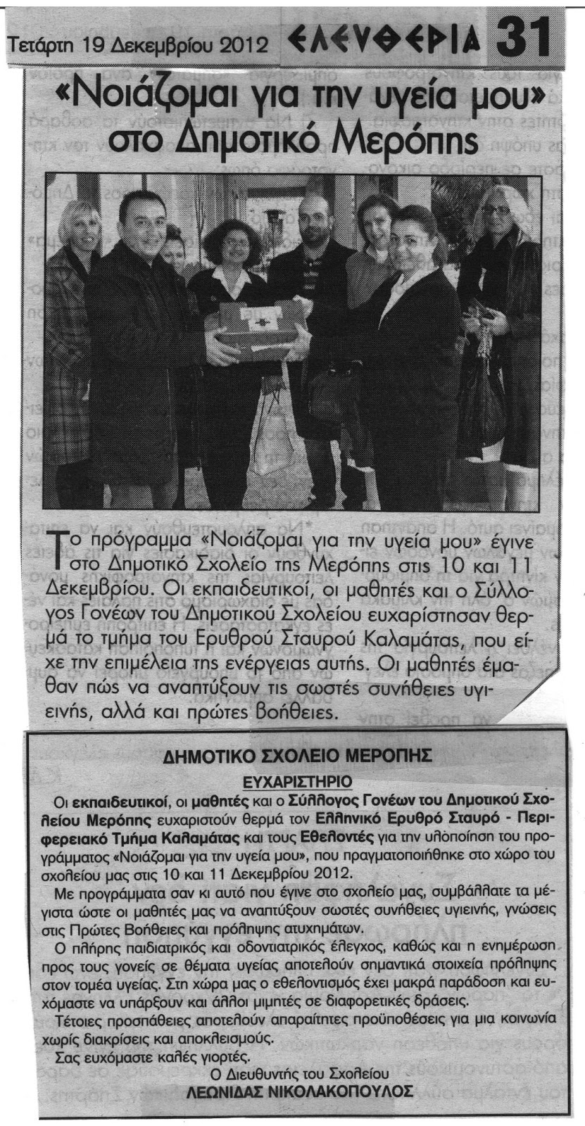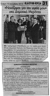 Στα πλαίσια του προγράμματος “Νοιάζομαι για την υγεία μου” που γίνεται από τον Ελληνικό Ερυθρό Σταυρό σε σχολεία απομακρυσμένων περιοχών επισκέφτηκε χτες το σχολείο μας μια επιστημονική ομάδα αποτελούμενη από παιδίατρο, οδοντίατρο και νοσηλεύτρια-επισκέπτρια υγείας,καθώς και εθελοντές που βοήθησαν στη διαδικασία.Οι δάσκαλοι και οι μαθητές τους ευχαριστούμε πολύ!
