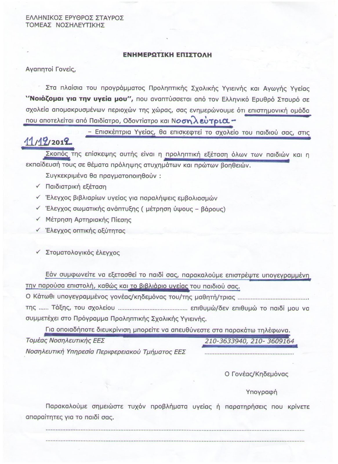 Πρόγραμμα “Νοιάζομαι για την υγεία μου”