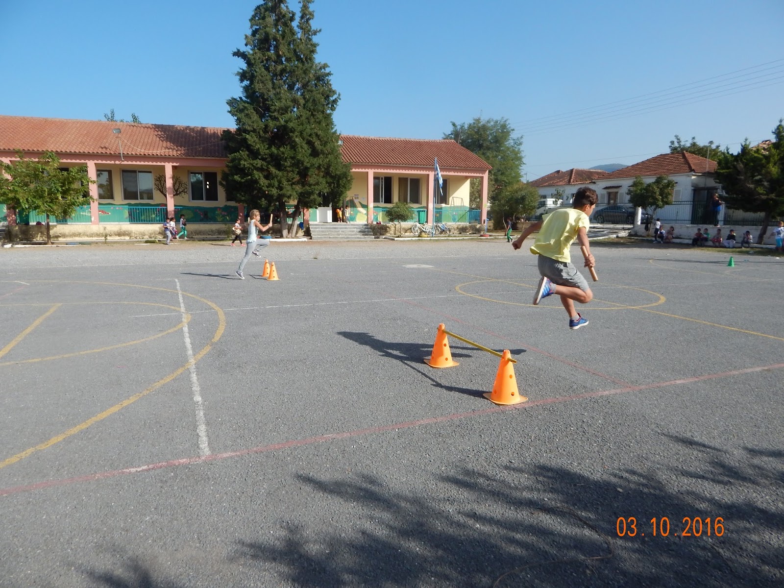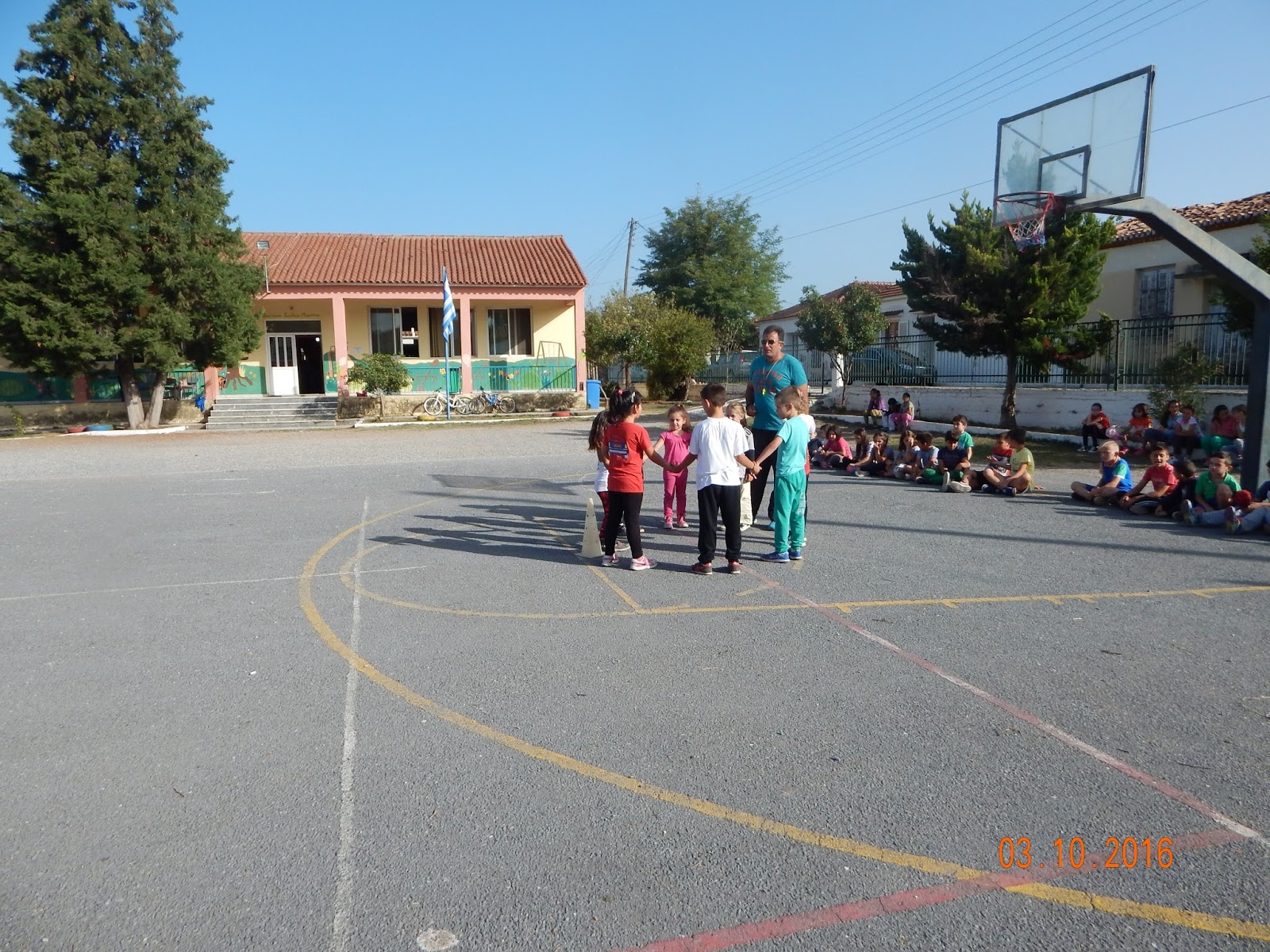 Στις 3 Οκτωβρίου, γιορτάσαμε στο σχολείο μας τη δεύτερη πανελλήνια ημέρα σχολικού αθλητισμού («Νιώσε τη χαρά της άθλησης χωρίς το άγχος της νίκης και το φόβο της αποτυχίας: Αθλητισμός- Δικαίωμα για όλους»). Με τις οδηγίες του γυμναστή μας Κόντου Κωνσταντίνου, τα παιδιά είχαν την ευκαιρία να συμμετέχουν σε ομαδικά παιχνίδια και αθλητικές δραστηριότητες (σκυταλοδρομίες, κ.α.) και να αθληθούν στα αγαπημένα τους σπορ (καλαθοσφαίριση, πετοσφαίριση, χειροσφαίριση κ.α.). Με αυτόν τον τρόπο τονίστηκε η σημαντικότητα της δημιουργίας της ομάδας και της ευγενής άμιλλας μεταξύ των συμπαικτών.
