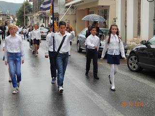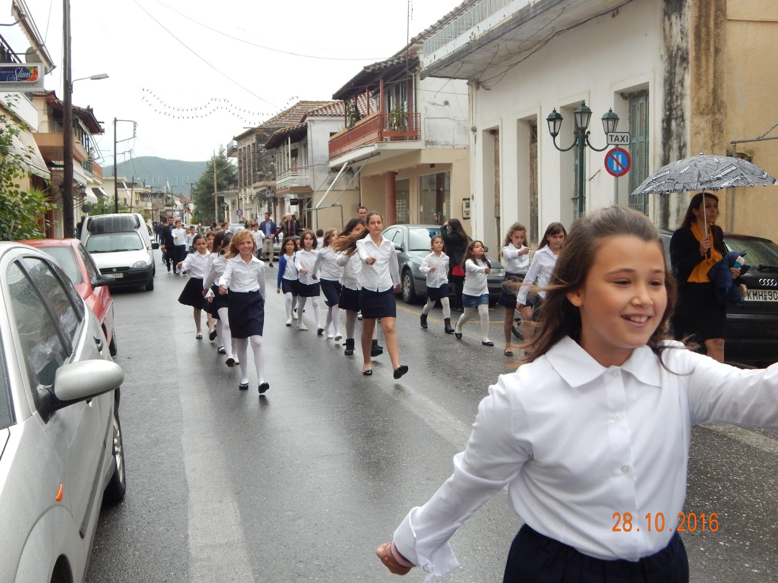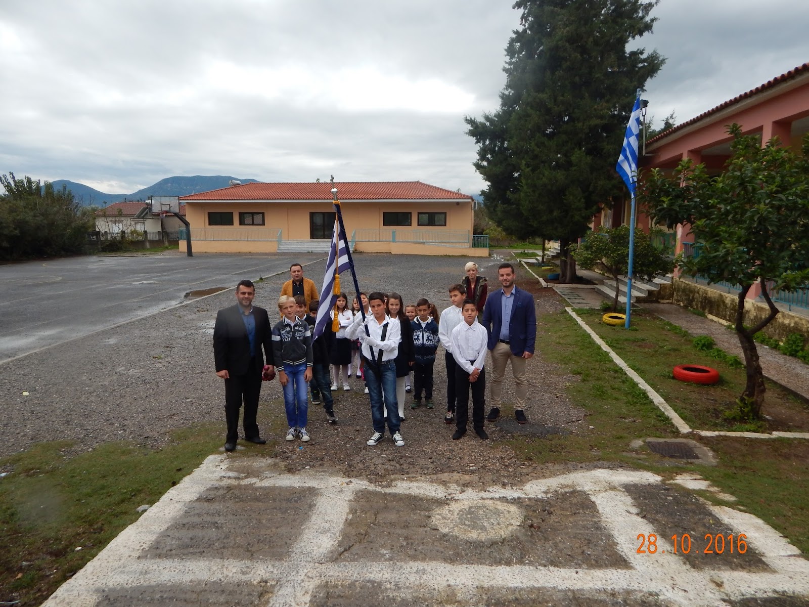 Ύστερα, το σχολείο μας παρέλασε στην κεντρική οδό του χωριού, μπροστά από το πρώην δημαρχείο. Καμαρώσαμε τους μαθητές μας και ιδιαίτερα τα παιδιά της ΣΤ΄ τάξης που κράτησαν τη σημαία.