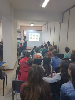 Η υπεύθυνη του τμήματος της τροχαίας μας μίλησε για την κυκλοφοριακή αγωγή, δηλ. την ασφαλή συμπεριφορά των παιδιών στον δρόμο ως πεζοί και ως ποδηλάτες Οι μαθητές παρακολούθησαν με πολύ ενδιαφέρον βίντεο και παρουσιάσεις και συμμετείχαν με πολλές απορίες.