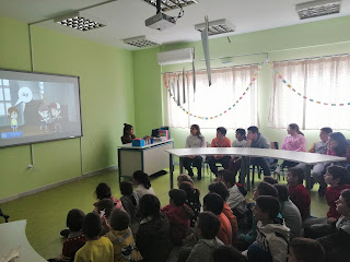 Ύστερα, παρακολουθήσαμε σχετικά βίντεο και ένα μικρό δρώμενο από μαθήτρια της ΣΤ΄ Τάξης. Η Νεράιδα Ευγενία μοίραζε στους υπόλοιπους μαθητές αστεράκια που είχαν γραμμένα πάνω τους όμορφα λόγια καλής συμπεριφοράς. Όλα αυτά έγιναν αφορμή για περαιτέρω συζητήσεις πάνω στο συγκεκριμένο θέμα. Στη συνέχεια, αποφασίσαμε να κάνουμε μια δράση ενθάρρυνσης των μαθητών ενάντια στη σχολική βία, δίνοντας «μετάλλια». Ένα μετάλλιο θα δίνεται σε έναν μαθητή από κάθε τάξη, ο οποίος στο τέλος της εβδομάδας θα είναι το παράδειγμα καλής συμπεριφοράς!