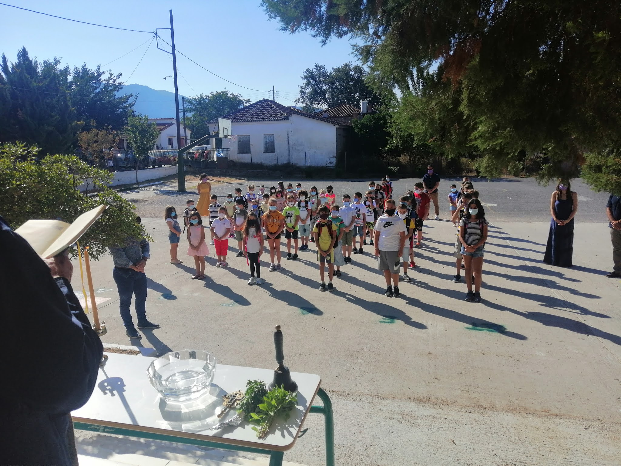 Σας ενημερώνουμε ότι τη Δευτέρα 14 Σεπτεμβρίου και ώρα 9.45 θα πραγματοποιηθεί ο Αγιασμός για την έναρξη της νέας σχολικής χρονιάς. Μετά τον Αγιασμό τα παιδιά θα παραλάβουν τα σχολικά βιβλία. Λόγω των ειδικών μέτρων προφύλαξης από τον ιό COVID-19 είναι υποχρεωτική η χρήση μάσκας από όλους, γονείς και παιδιά. Οι συνοδοί των μαθητών θα πρέπει να παραμείνουν εκτός του προαύλιου χώρου του σχολείου για να τηρηθούν οι απαραίτητες αποστάσεις.