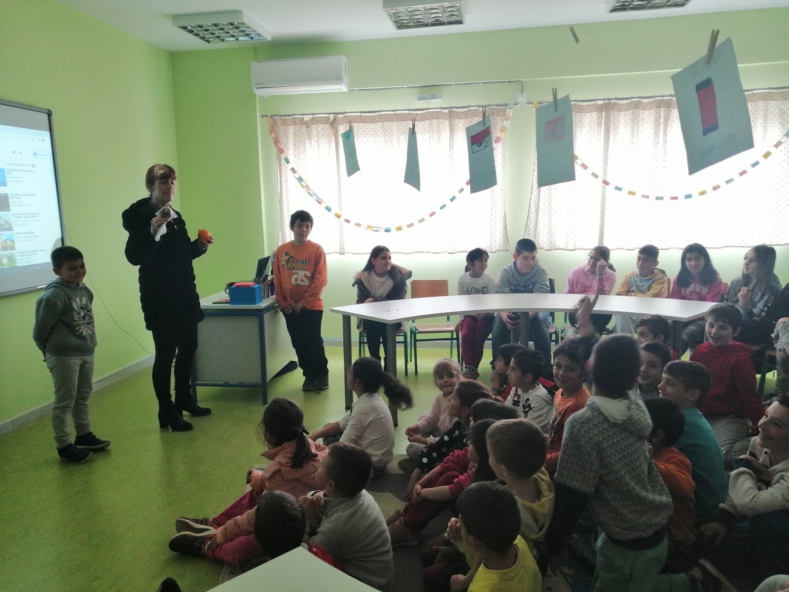 Η κα Πανούση μας μίλησε για το πόσο εύκολα μεταδίδεται ο κορωνοϊός και πώς μπορούμε να τον αποφύγουμε. Τόνισε τη σωστή χρήση της μάσκας και το σχολαστικό πλύσιμο των χεριών ως τα σημαντικότερα μέτρα προφύλαξης από τη μετάδοση του ιού. Σχετικά βίντεο, καθώς και η βιωματική μάθηση των σωστών κινήσεων την ώρα του πλυσίματος των χεριών, έκαναν πιο παραστατική τη συζήτηση με τα παιδιά. Οι μαθητές συμμετείχαν με πολύ ενδιαφέρον και αυτό φάνηκε από το πλήθος των ερωτήσεων που είχαν.