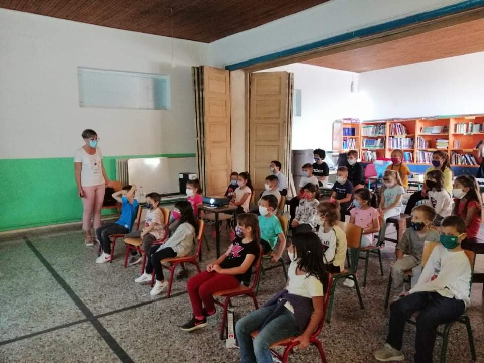 Την Τετάρτη 14 Οκτωβρίου μας επισκέφτηκε στο σχολείο η κα Γεωργία Πανούση, επισκέπτρια υγείας από το Κέντρο Υγείας του Μελιγαλά, για να ενημερώσει τους μαθητές μας σχετικά με τον κορωνοϊό Covid-19 και τους τρόπους προστασίας από τη μετάδοσή του, στα πλαίσια του προγράμματος ενημέρωσης των μαθητών των σχολείων από φορείς του ΕΟΔΥ.