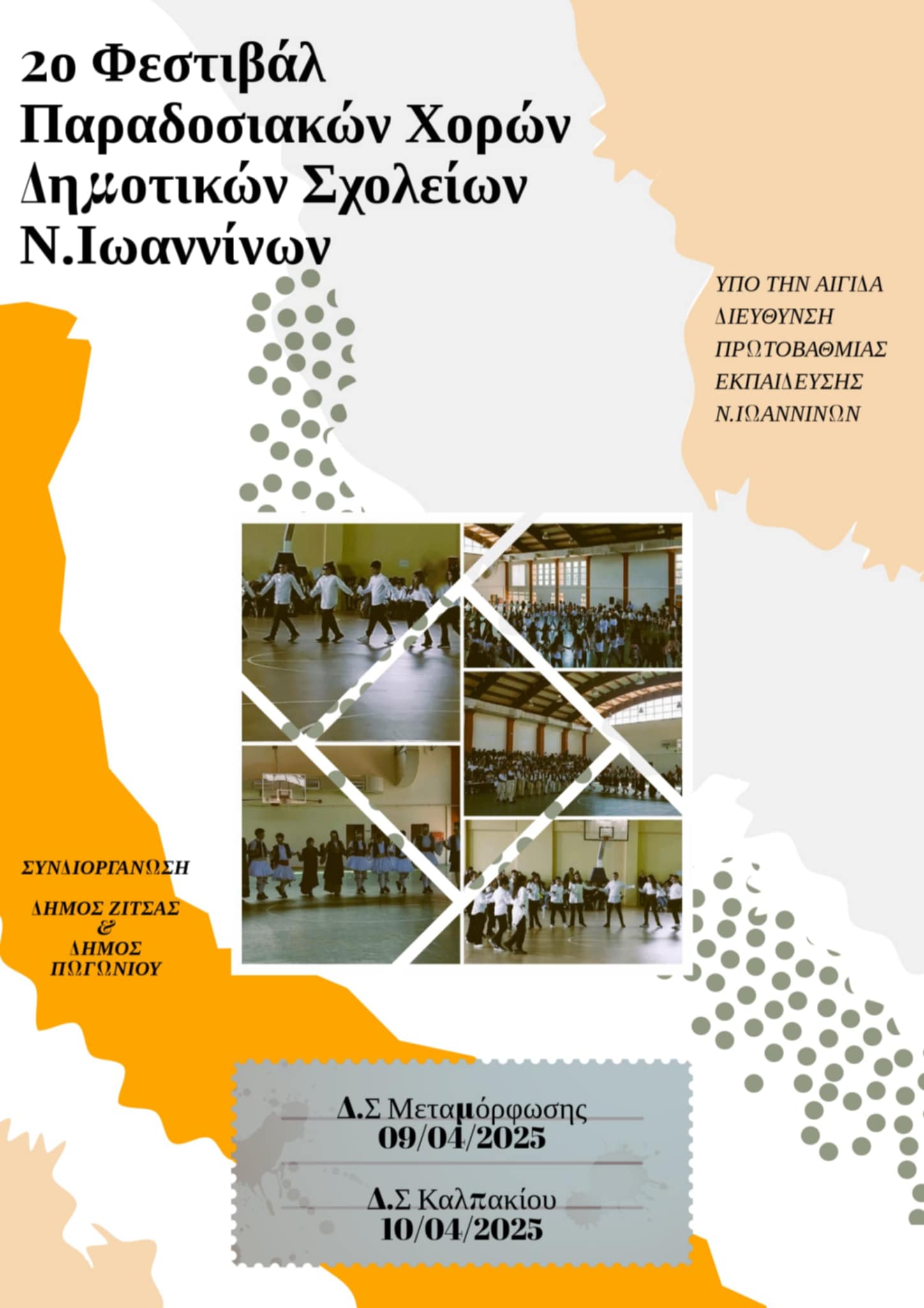 ο Δ.Σ Μεταμόρφωσης σε συνεργασία με το Δ.Σ Καλπακίου διοργάνωσαν το 2ο Φεστιβάλ Παραδοσιακών Χορών Σχολείων Ν. Ιωαννίνων. Στο φεστιβάλ συμμετείχαν πάνω από 20 σχολεία του Ν. Ιωαννίνων και Ηγουμενίτσας.