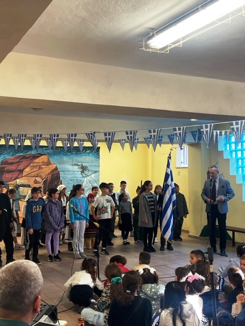 Την Παρασκευή 25 Οκτωβρίου γιορτάστηκε με πολύ όμορφο τρόπο στο σχολείο μας η Επέτειος του ΟΧΙ του 1940. Οι μαθήτριες και οι μαθητές της Δ΄ τάξης, με την καθοδήγηση της δασκάλας τους κας Βάσως Παπαγεωργίου και την υποστήριξη από τον εκπαιδευτικό Μουσικής του σχολείου μας κου Γιάννη Αϊβάζογλου, έδωσαν τον καλύτερό τους εαυτό και μας έδωσαν ένα εξαίσιο αποτέλεσμα που το απόλαυσαν όλοι οι προσκεκλημένοι στην εορτή, μικροί και μεγάλοι. Συγχαρητήρια στα παιδιά και τους εκπαιδευτικούς τους!