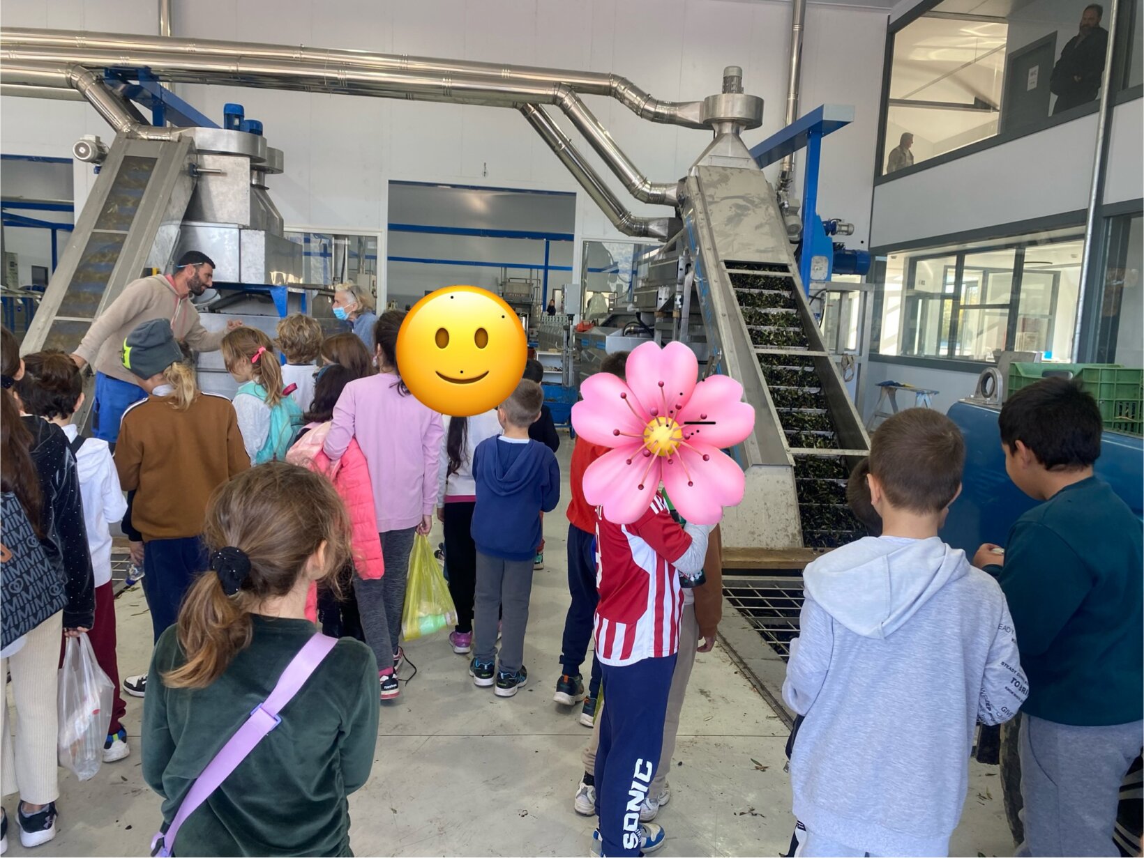Οι μαθητές αρχικά έμαθαν ότι οι ελιές μπαίνουν στο λεγόμενο “πλυντήριο”, όπου πλένονται για να καθαριστούν από τη σκόνη, τις λάσπες και τα φύλλα. Στη συνέχεια, περνούνστον“ σπαστήρα” που σπάει την ελιά, έπειτα μπαίνουν στον “μαλακτήρα”, γίνονται πολτός κι εκεί παραμένουν περίπου μία ώρα. Ο πολτός μπαίνει μετά στον πρώτο “διαχωριστή” που χωρίζει το λάδι, το νερό και τον πυρήνα (το κουκούτσι της ελιάς).